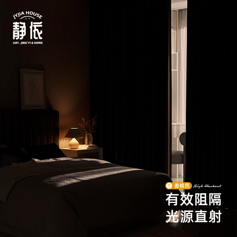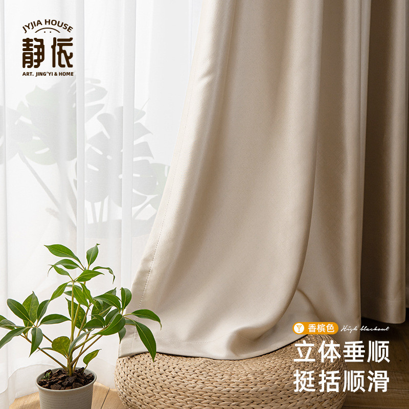 热销轻奢2022新款全遮光卧室客厅飘窗窗帘布成品素色窗帘遮光现代