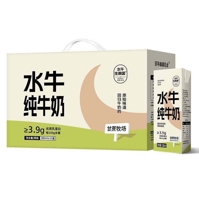 南国乳业水牛纯牛奶200ml12盒*2箱3.9优质乳蛋白儿童营养早餐包邮