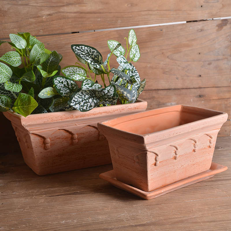 北欧多肉花盆红陶花盆欧式罗马盆陶土盆浮雕花盆大号方盆粗陶透气