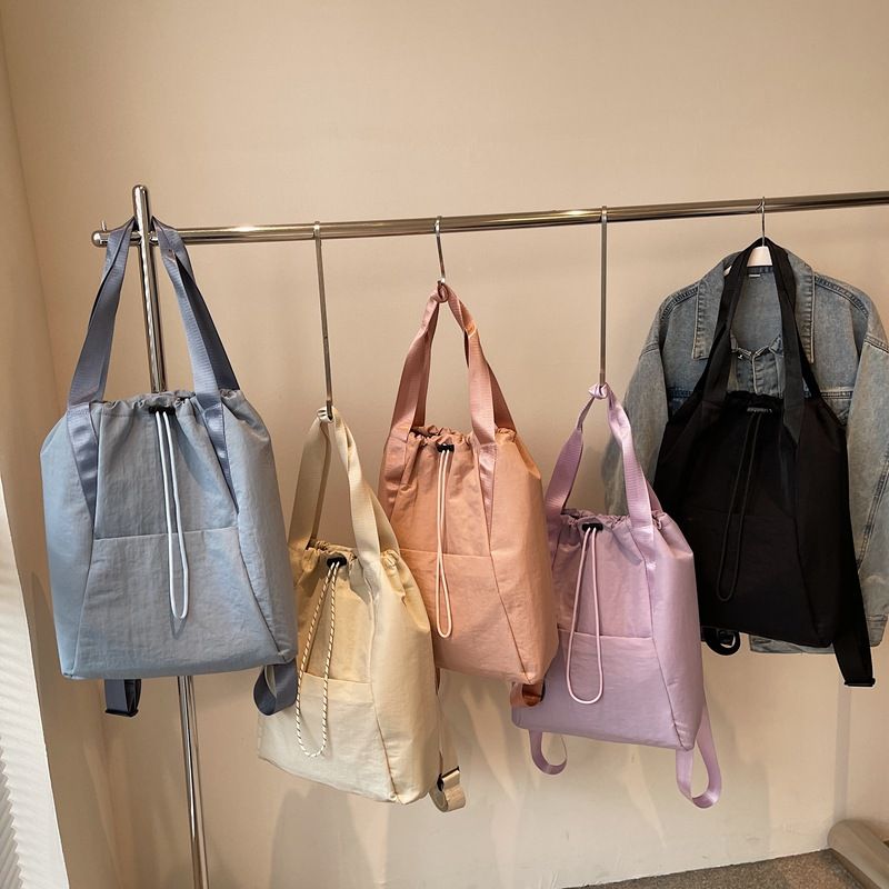 日系纯色简约通勤双肩包女新款大容量百搭旅行背包多用抽绳手提袋