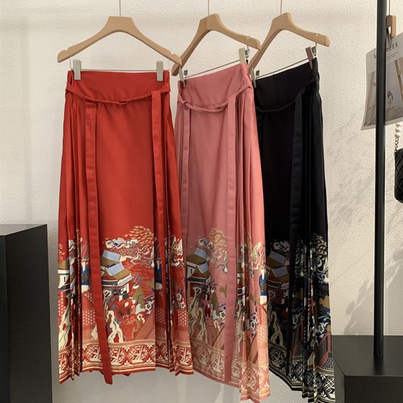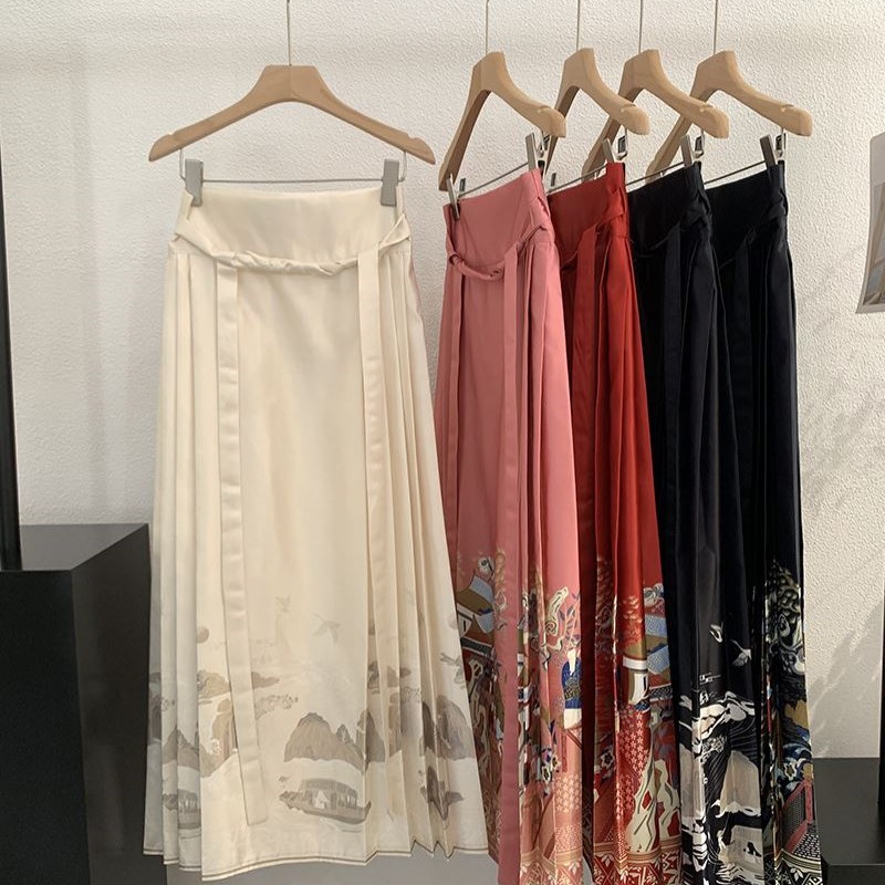 新中式国风马面裙女春季夏季2024新款改良汉服百褶裙一片式半身裙