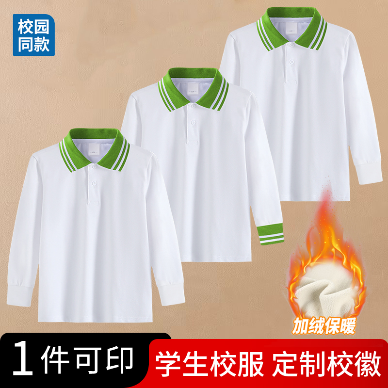 09儿童校服中小学生园服白色长袖T恤POLO衫男女童秋冬装加绒上衣