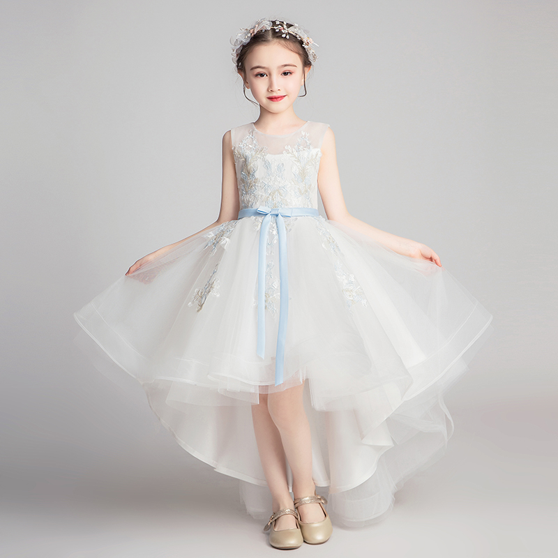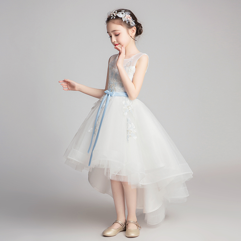 儿童礼服公主裙女童生日白色小花童主持人钢琴演出服高端洋气夏季