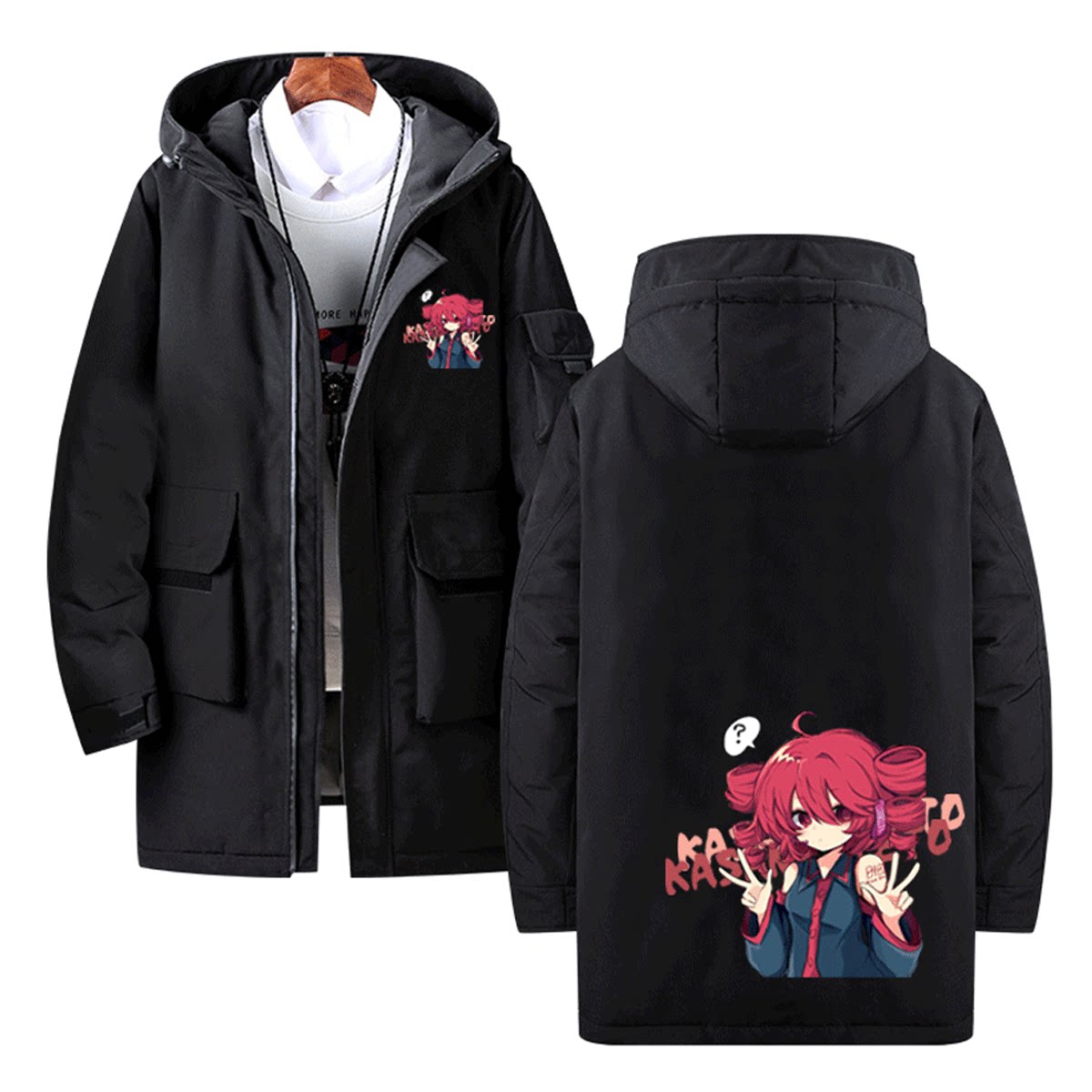 初音未来重音动漫周边男女学生冬休闲百搭可定制中长款连帽羽绒服