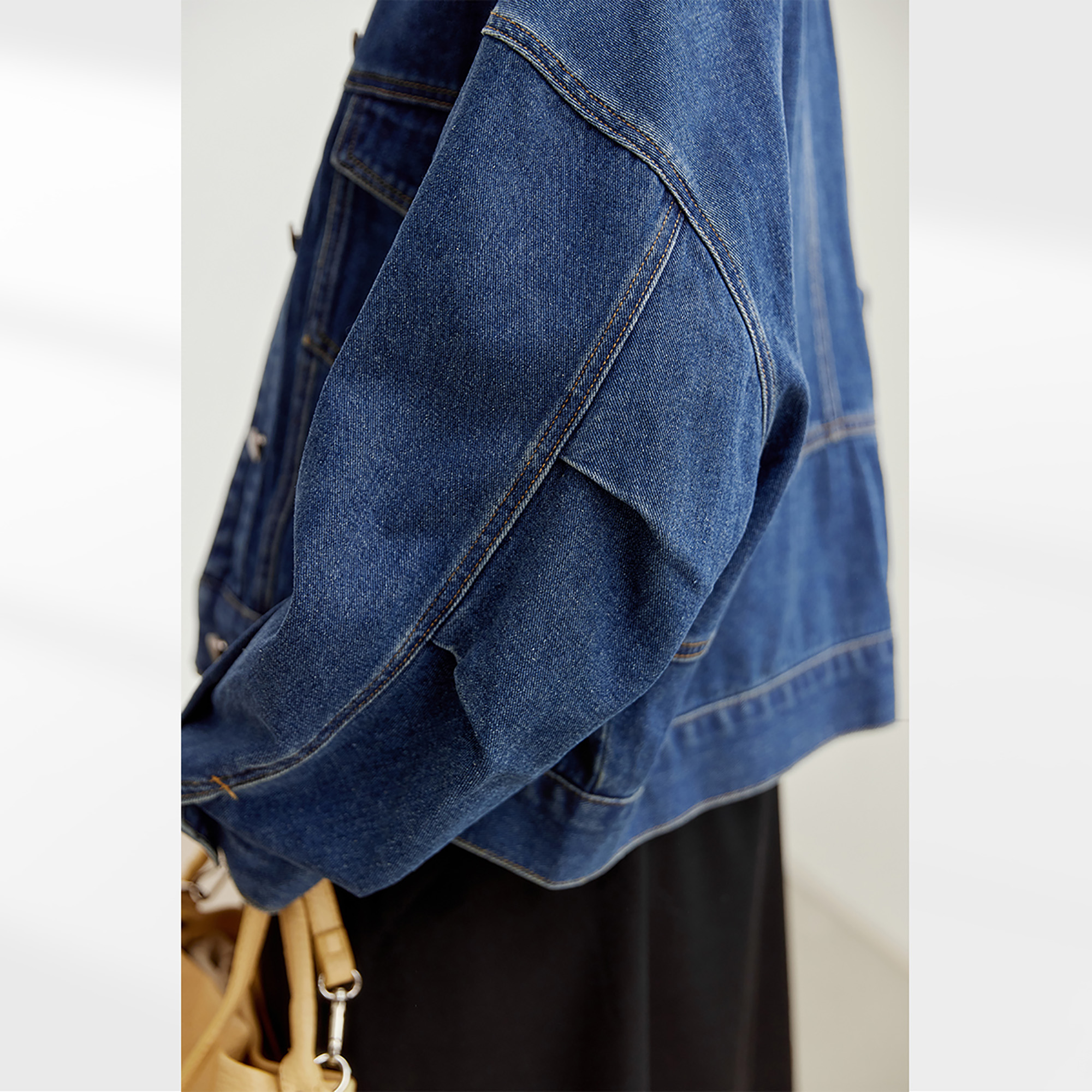 MEETLADY复古丹宁牛仔外套女2024秋新款小个子宽松休闲短款上衣女