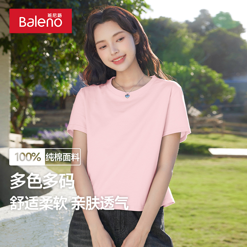 班尼路100%纯棉短款t恤女2025夏季新款韩版宽松小个子短袖上衣Q
