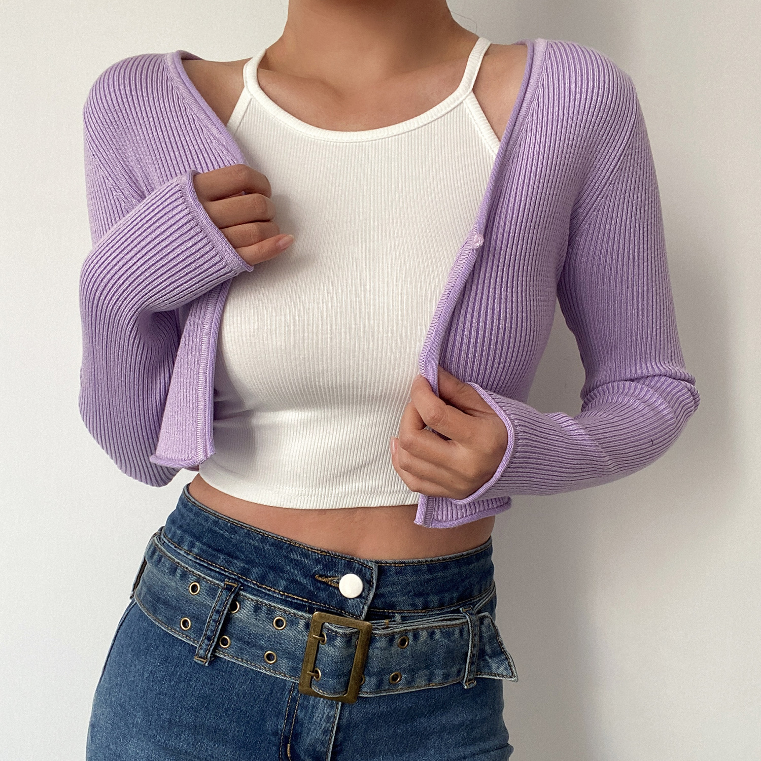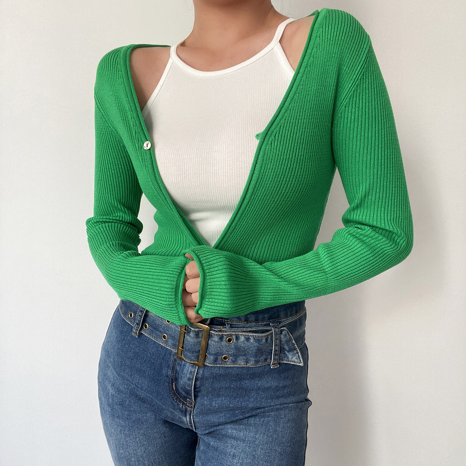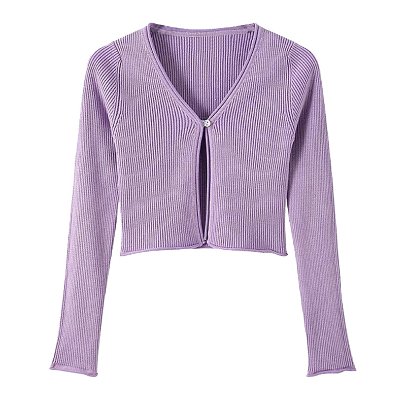 BERAN 早春复古可爱百搭一粒扣纯色高腰短款长袖针织衫开衫