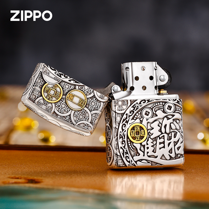 zippo打火机五帝钱熏银盔甲原装正版煤油芝宝防风创意之宝男士