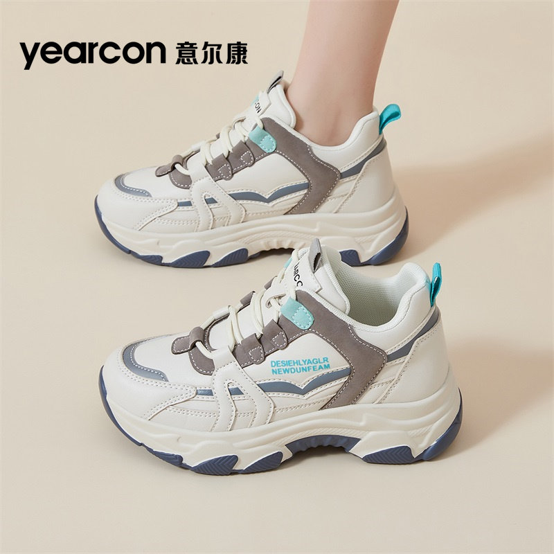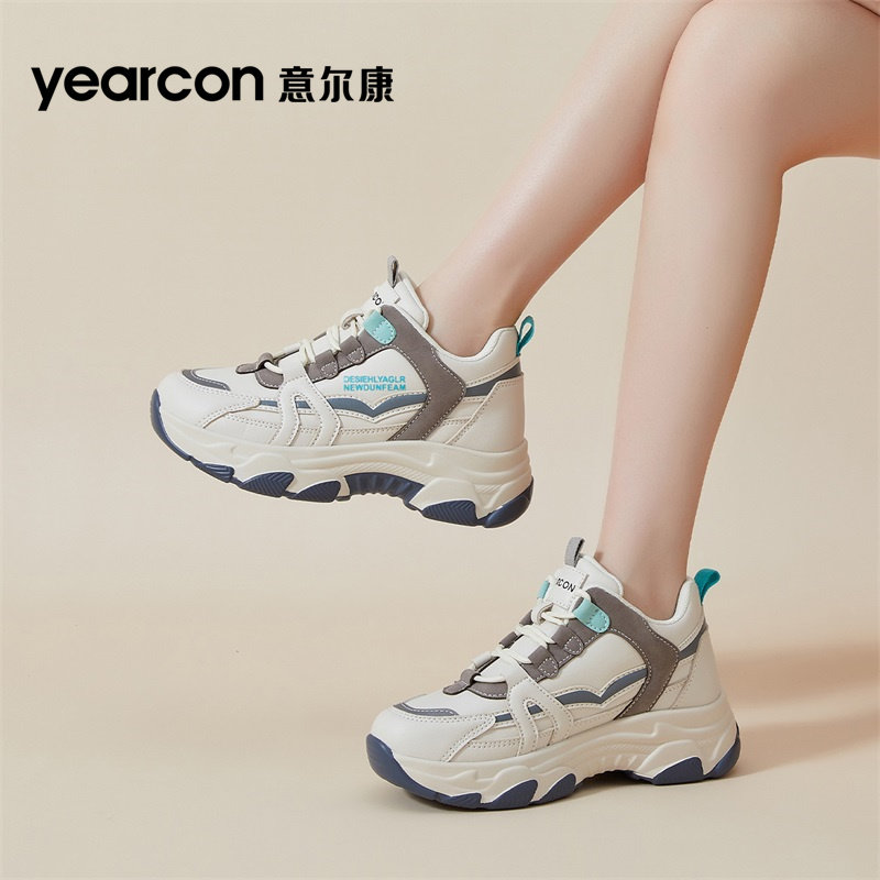意尔康女鞋2026新款秋冬季加绒棉鞋厚底增高老爹鞋女士休闲运动鞋