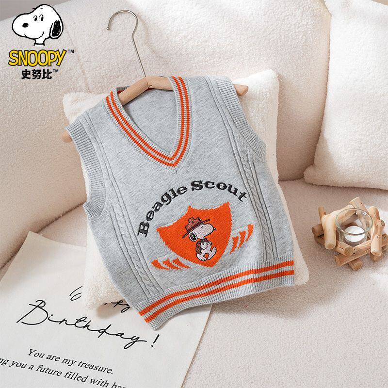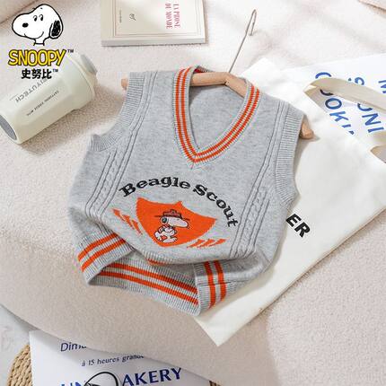 史努比童装儿童马甲毛衣新款背心春秋男童针织纯棉童装宝宝针织衫