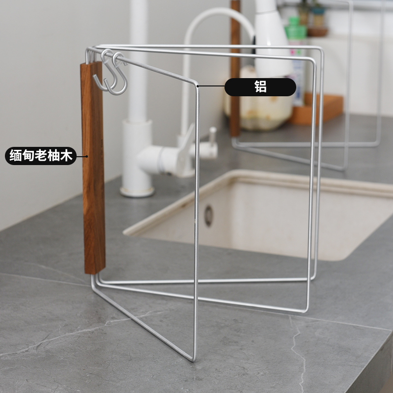 翀厨房毛巾架抹布架多功能收纳架水池台面窄旋转置物架缅甸柚木铝