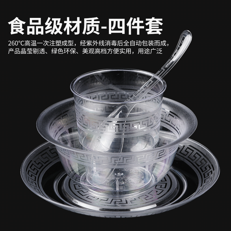 一次性航空餐具四件套烧烤饭店食品级硬塑料耐高温杯碟勺碗筷套装