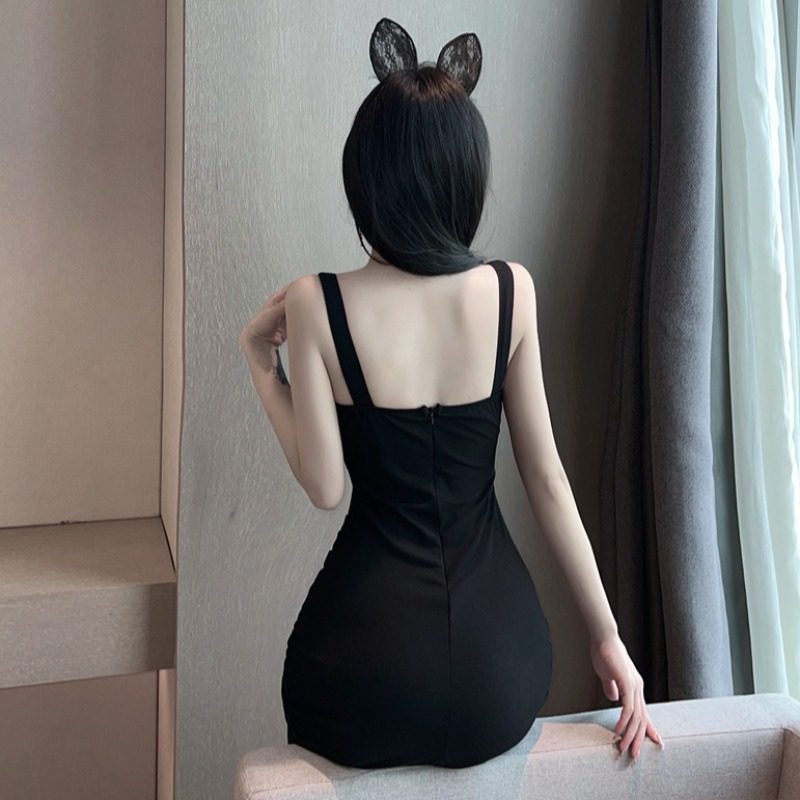 2025新款深V领镂空显胸性感夜店辣妹紧身包臀短裙露背吊带连衣裙