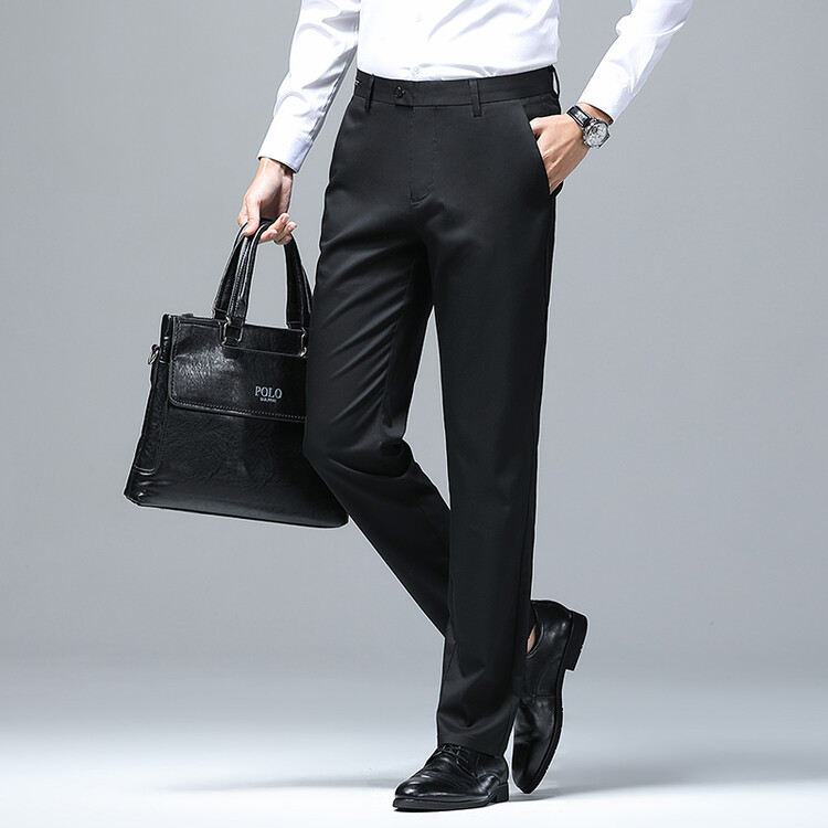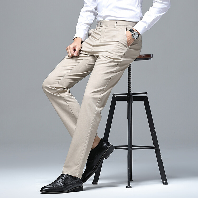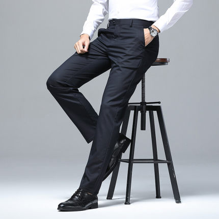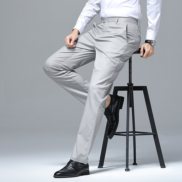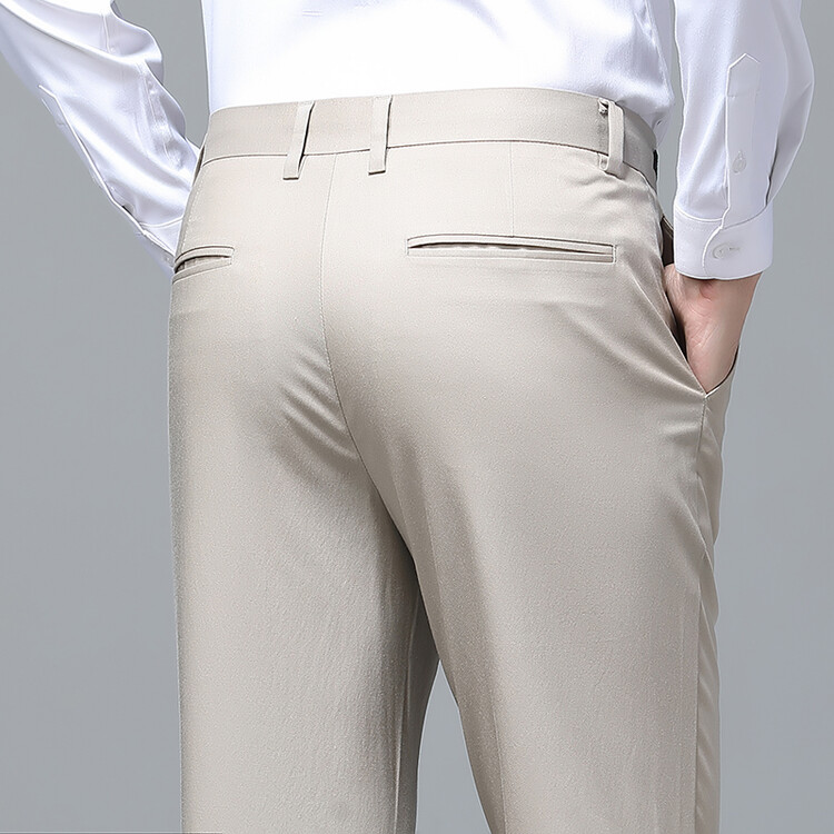 蚕丝修身夏季长裤中青年男士职业装商务西裤弹力直筒小脚休闲长裤