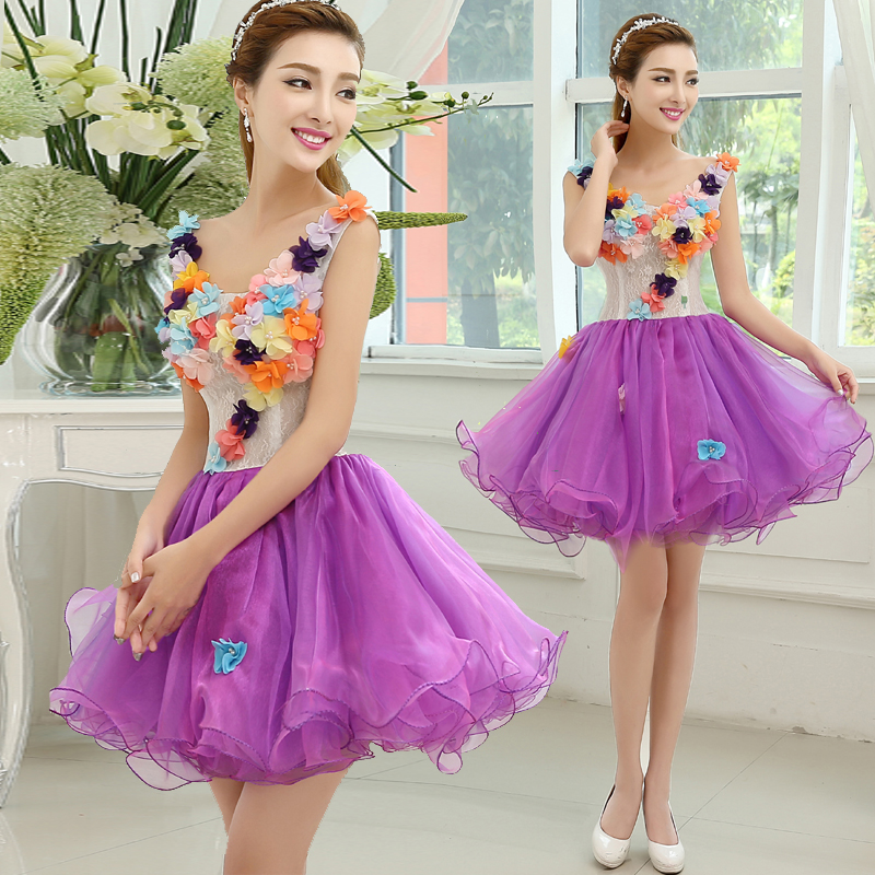 2023新款小礼服彩纱婚纱宴会小短裙蓬蓬裙演出生日礼服舞台服主持