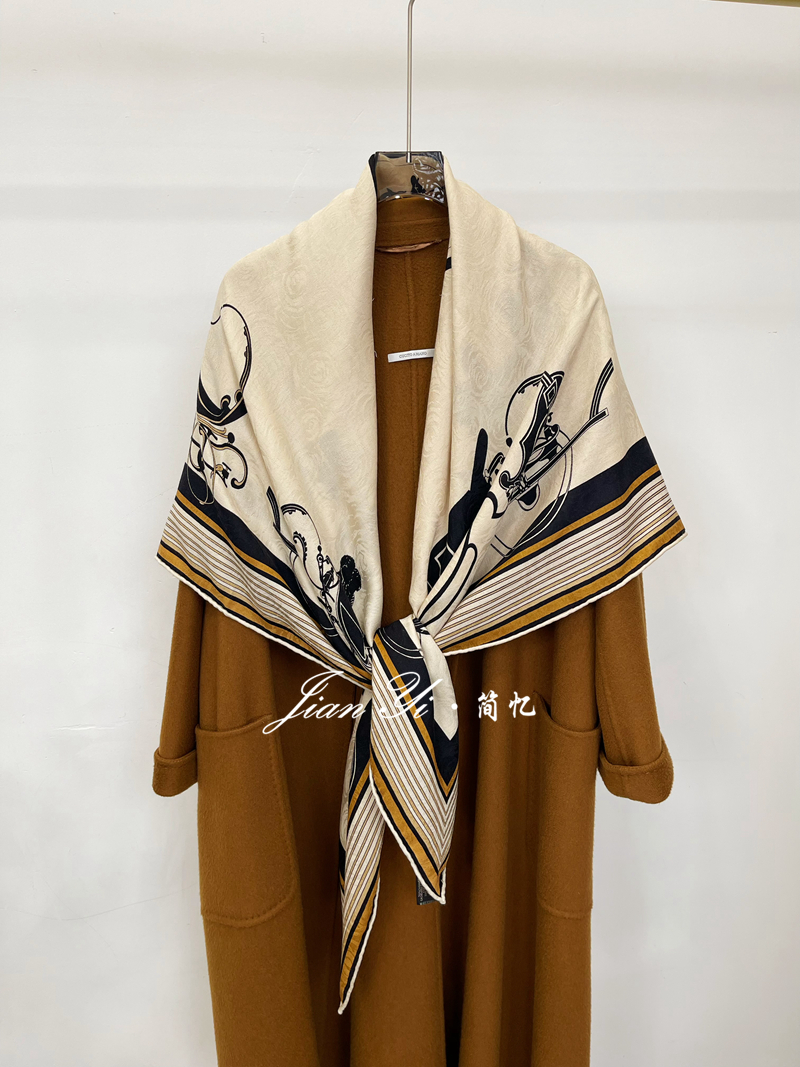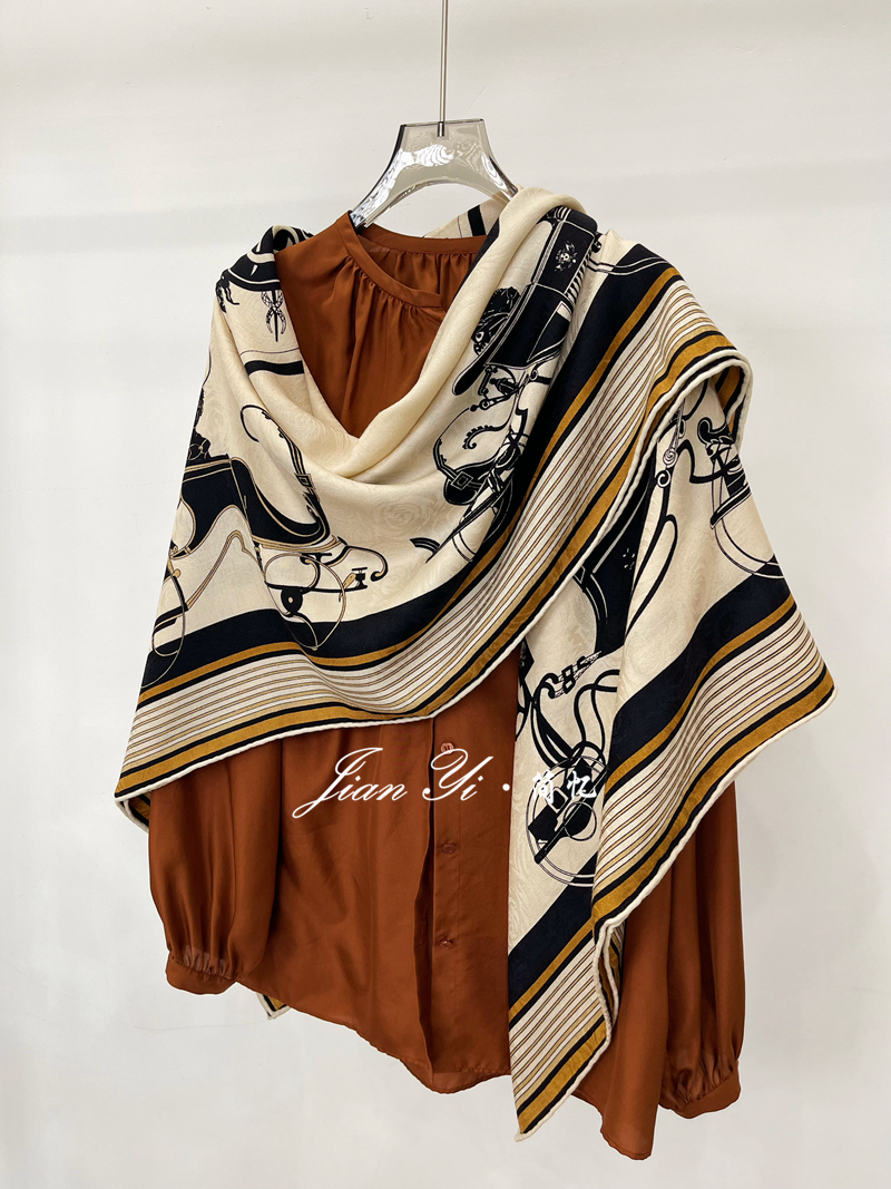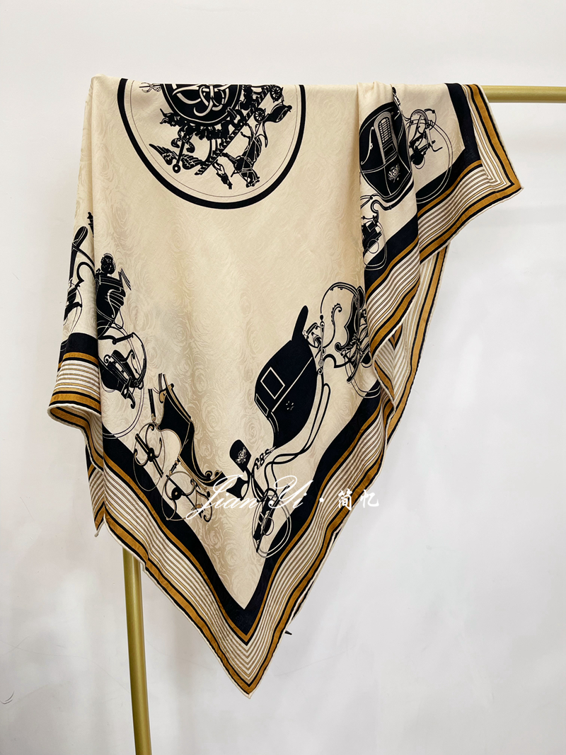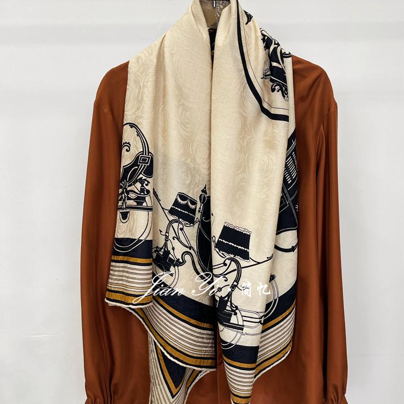 【藏书章】高奢经典百搭提花真丝羊毛130大方巾空调披肩围巾推荐