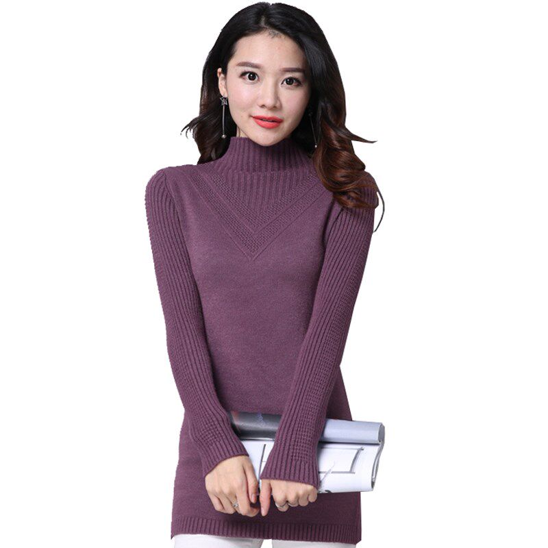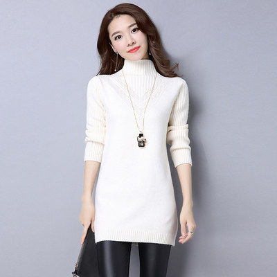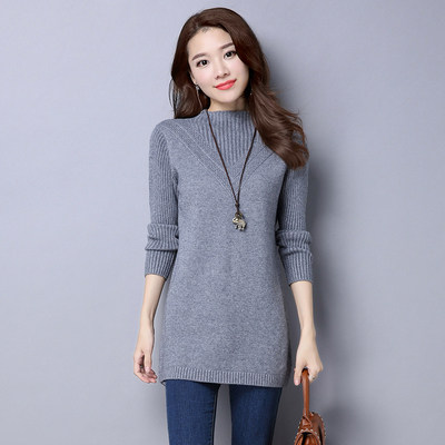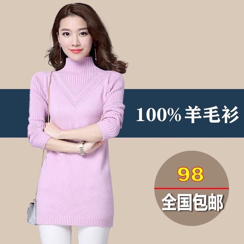 鄂尔多斯市100羊毛衫女中长款毛衣半高领套头冬季针织包臀打底衫