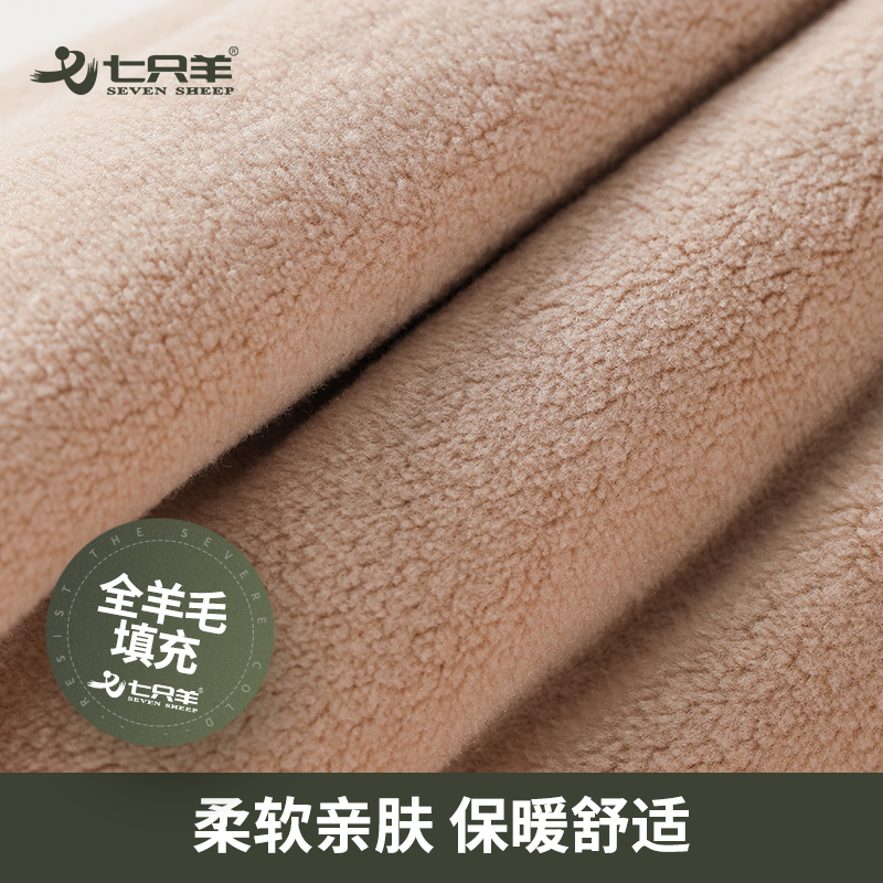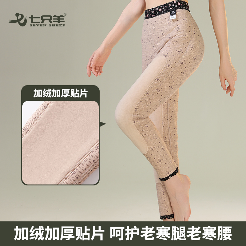七只羊加绒加厚羊毛裤贴片保暖裤