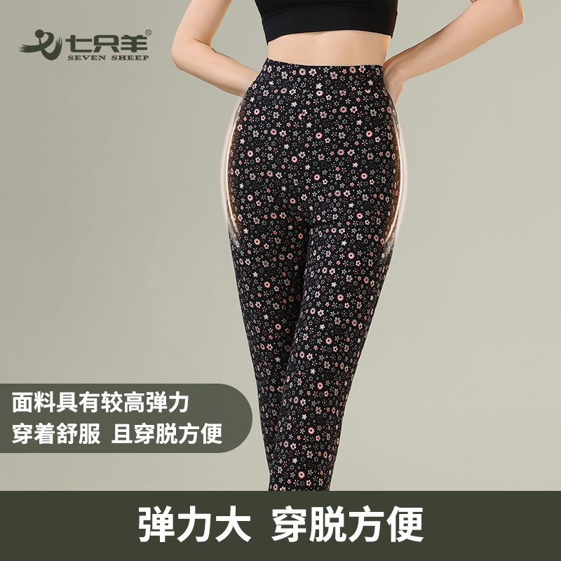 七只羊保暖裤加绒加厚冬季老年羊毛裤女棉裤妈妈外穿绒裤打底3122