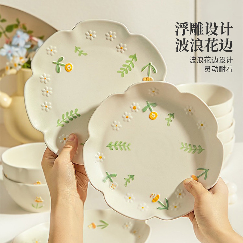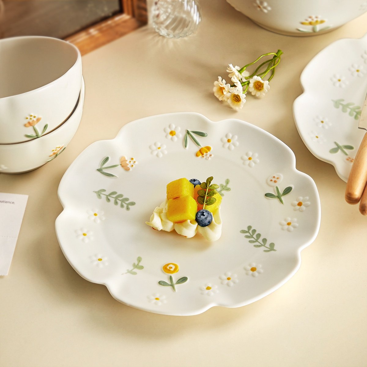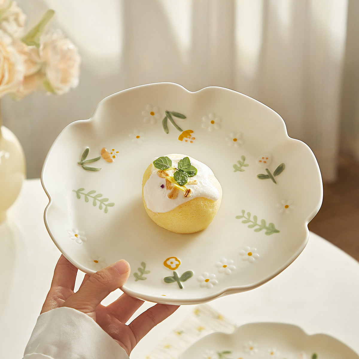 浮雕甜品盘蛋糕盘子精致陶瓷碗碟餐具菜盘好看的点心早餐盘水果盘
