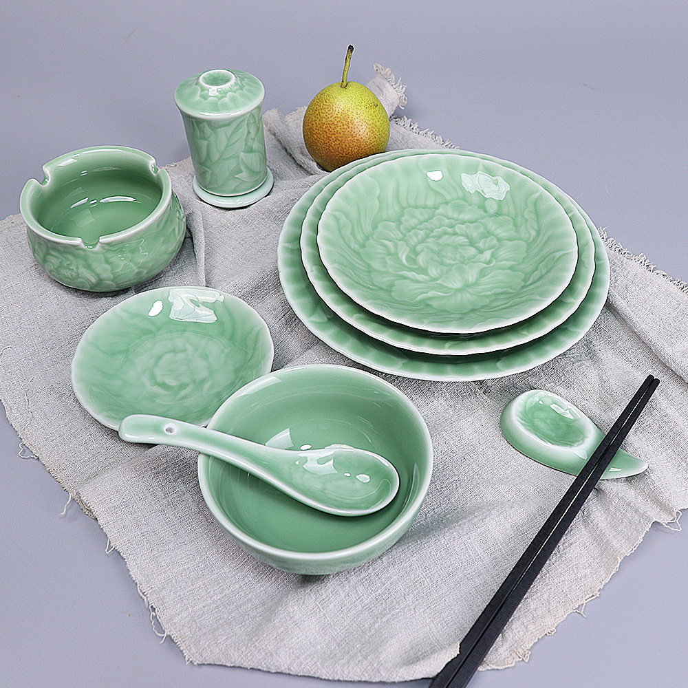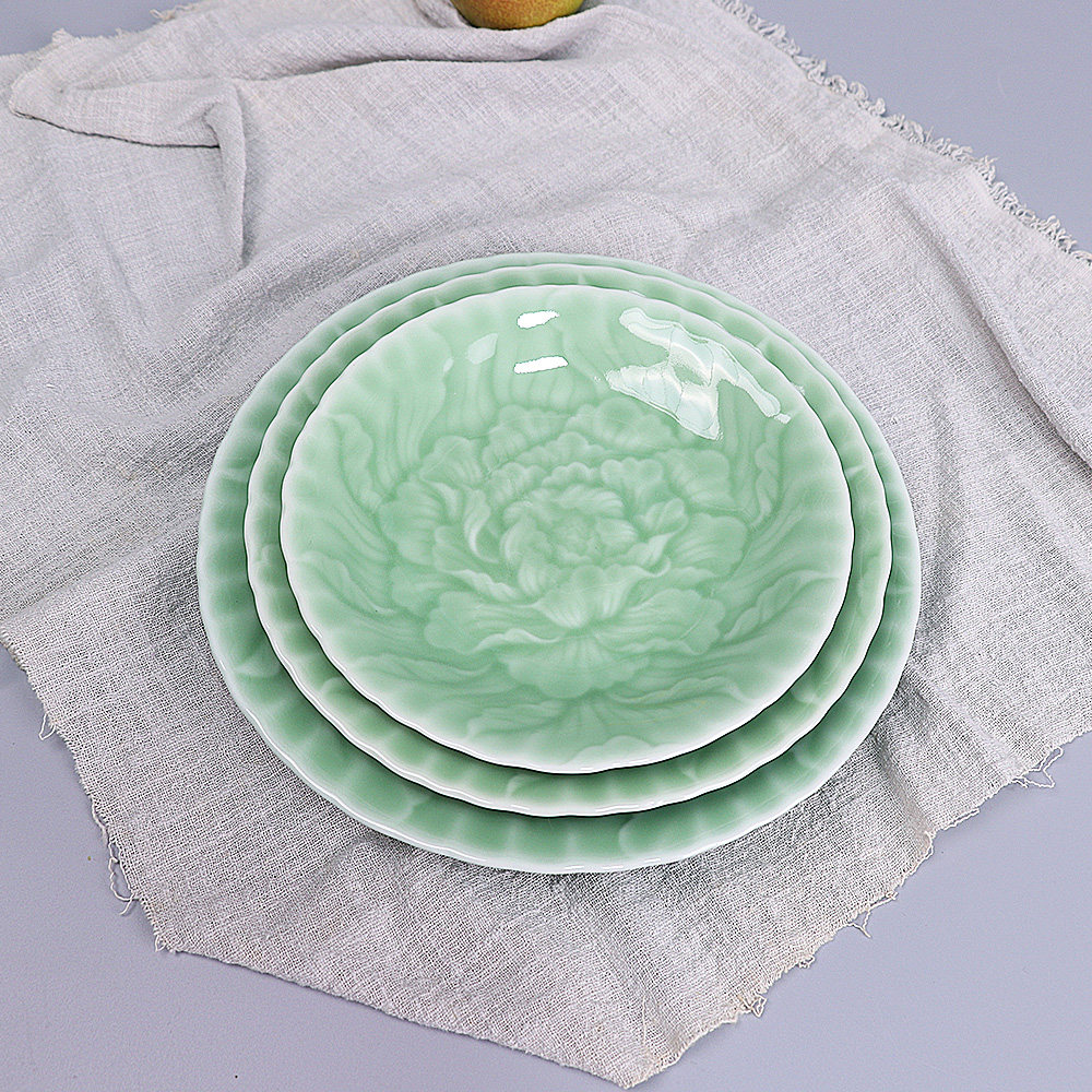 龙泉青瓷牡丹缠枝系列碟餐具菜盘
