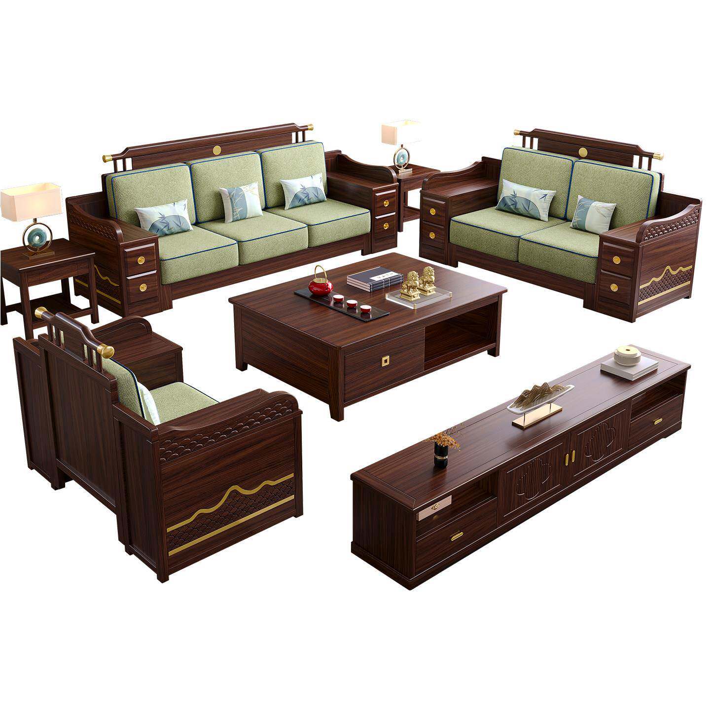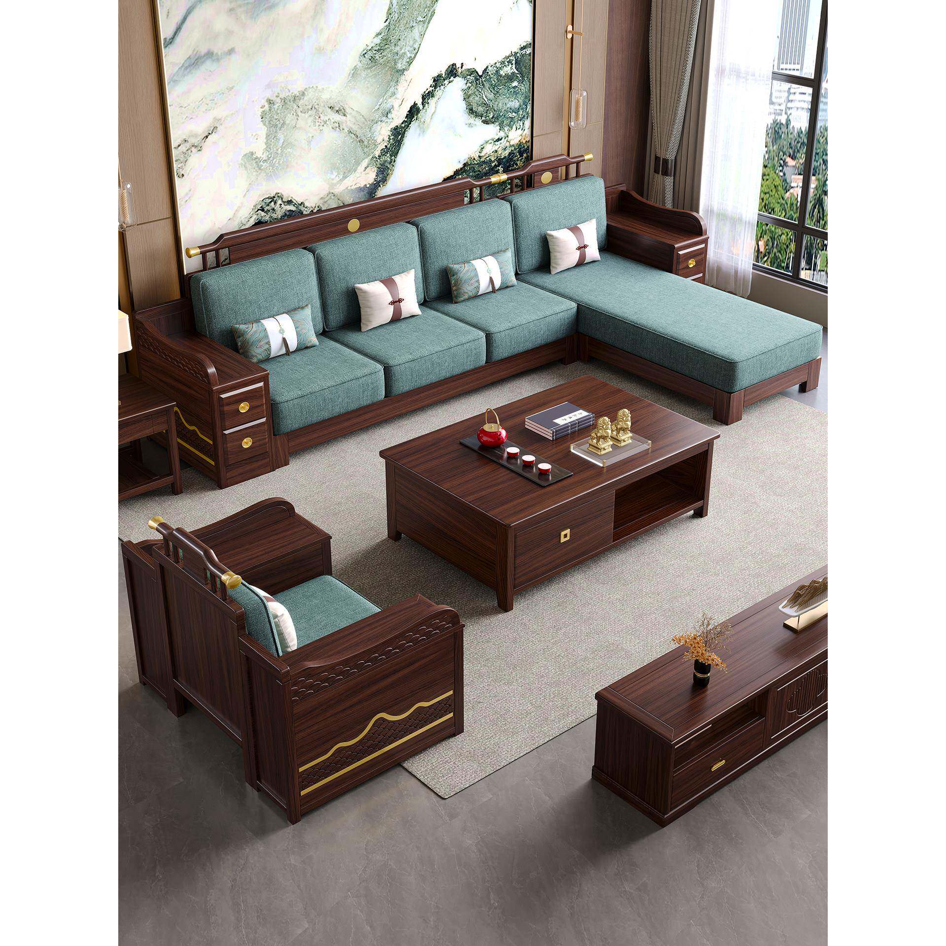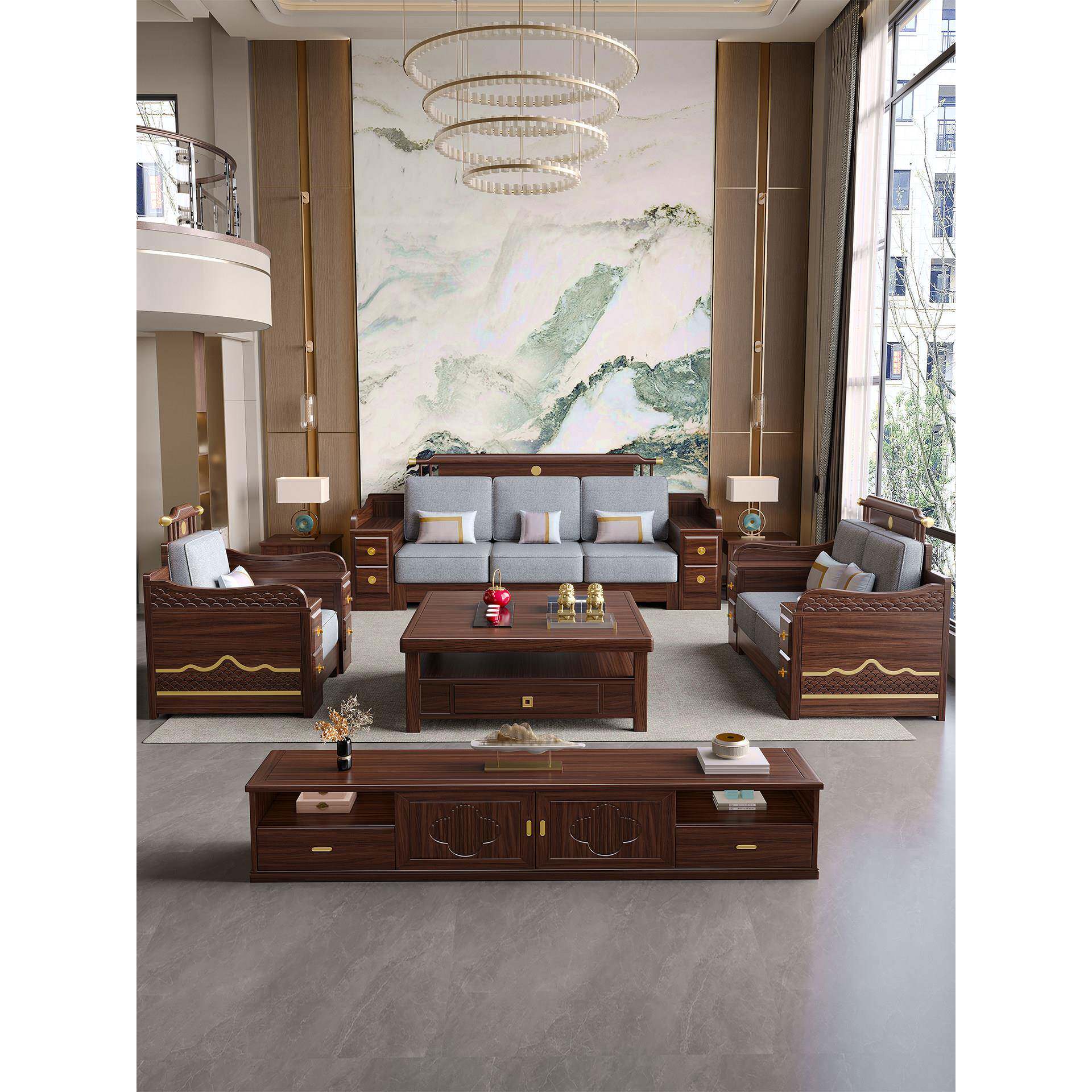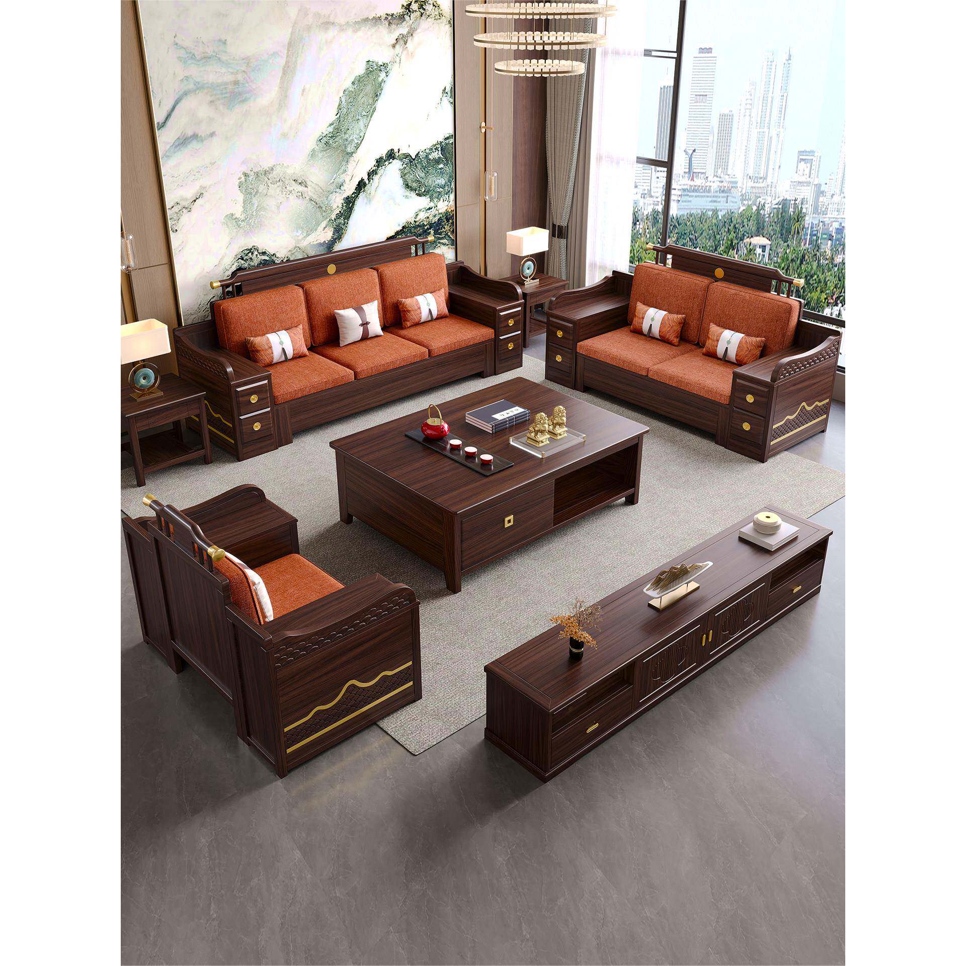 新中式乌金木实木沙发组合家用客厅大小户型冬夏两用储物客厅沙发