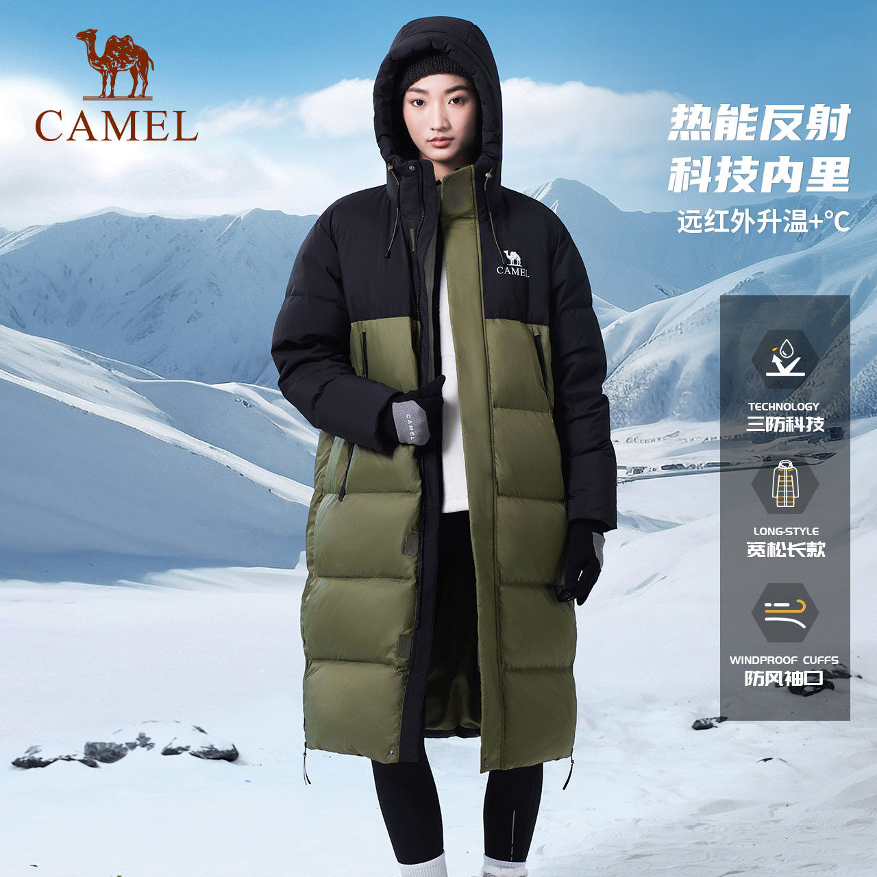 骆驼女装三防羽绒服长款过膝2025冬季新款御寒加厚保暖羽绒外套女