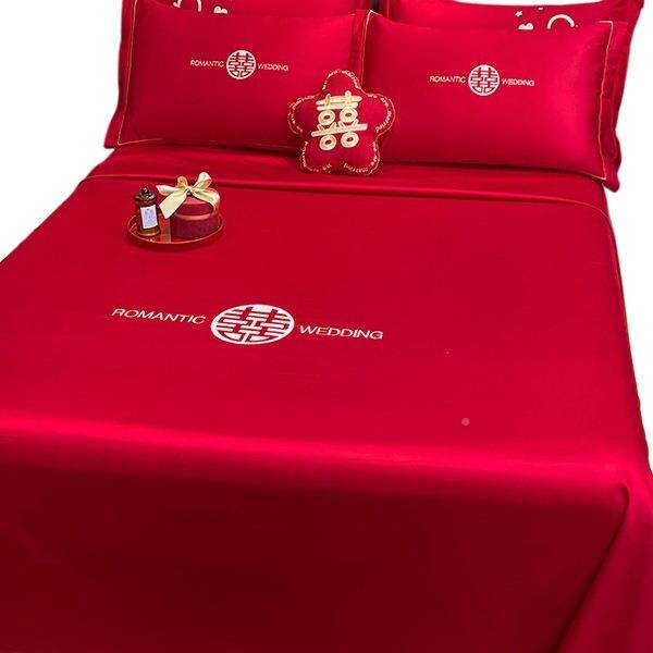 大红婚庆床单件结婚单喜庆套被单枕字三件套喜刺绣酒店新婚嫁F996