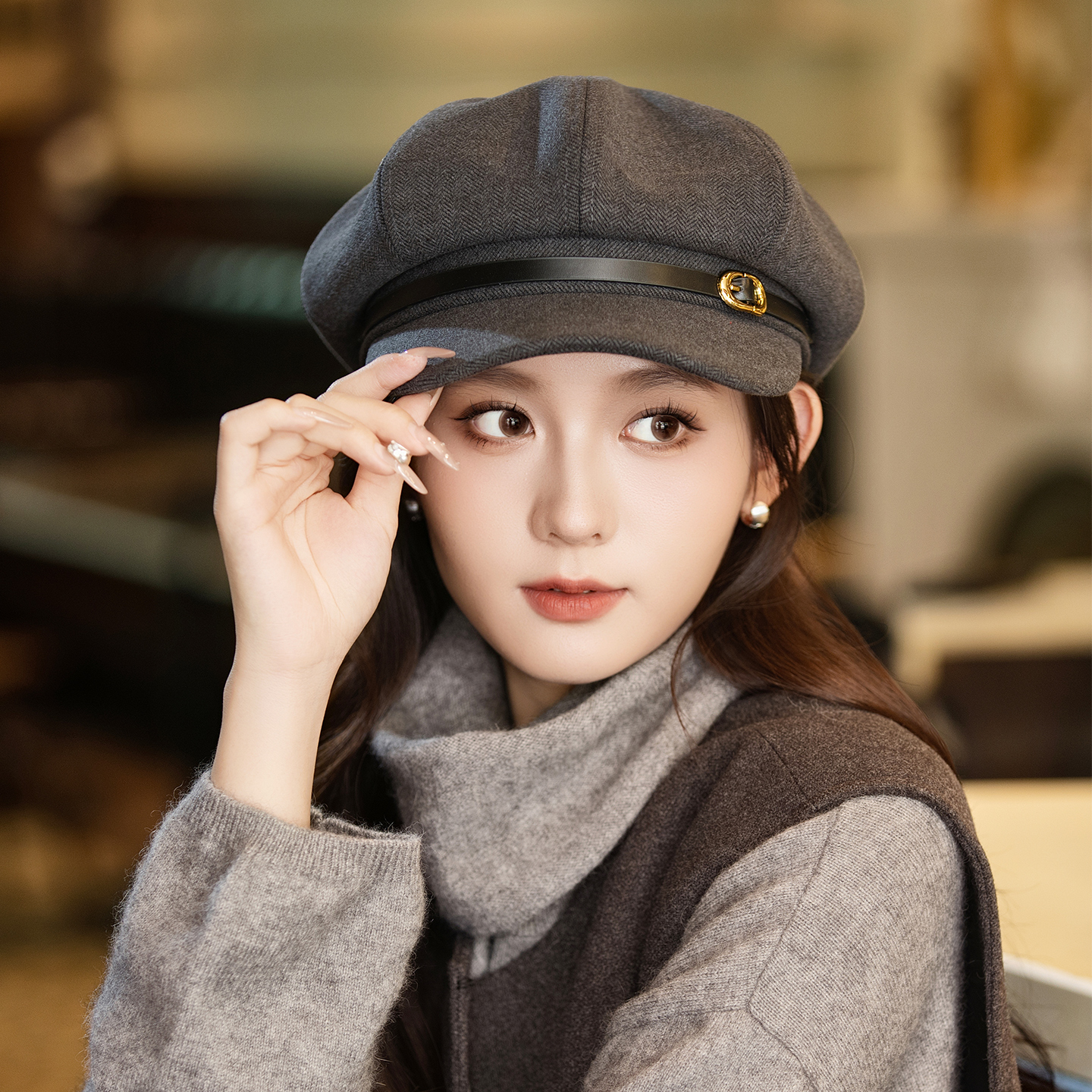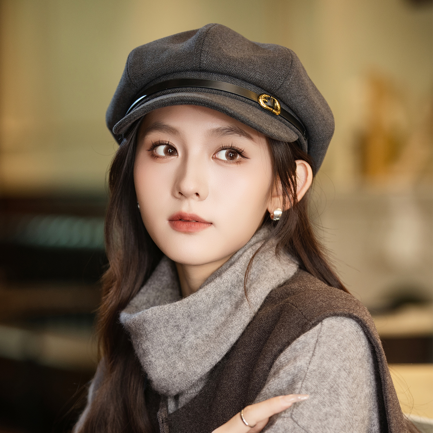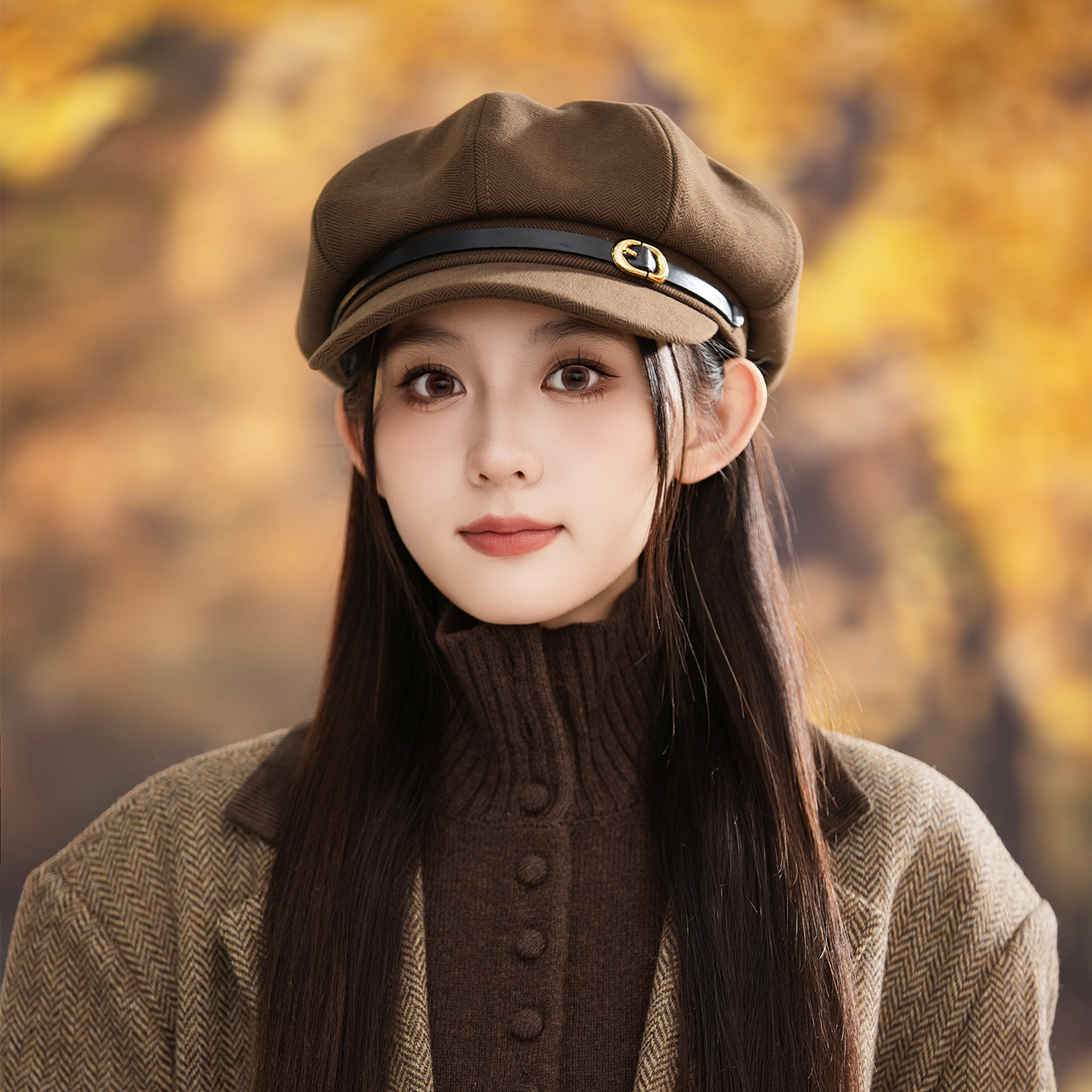 2025新款八角帽子女秋冬天加厚保暖贝雷帽时尚优雅复古鸭舌画家帽