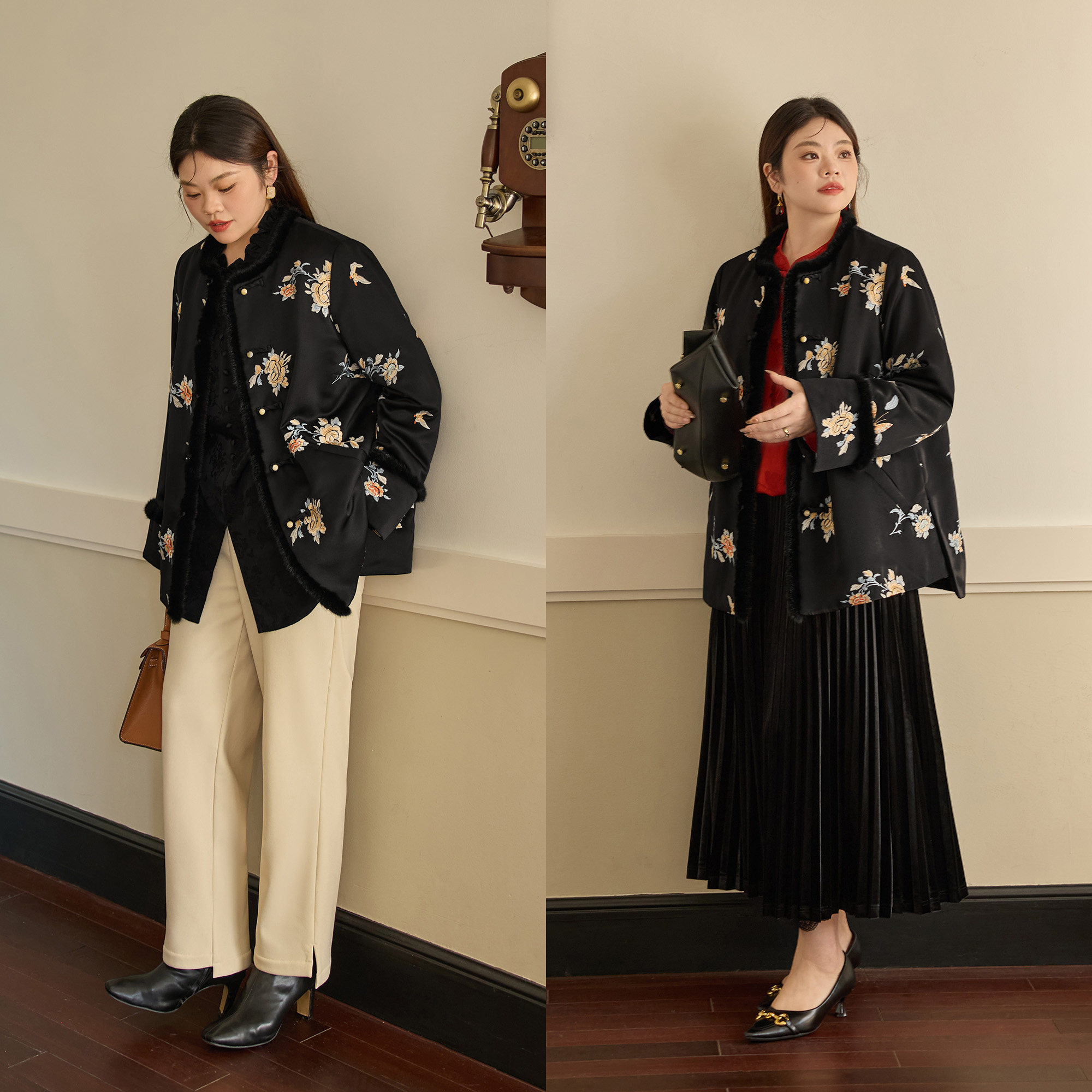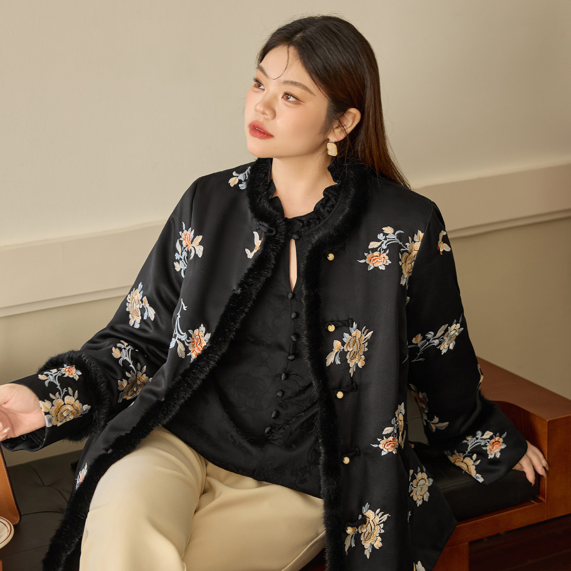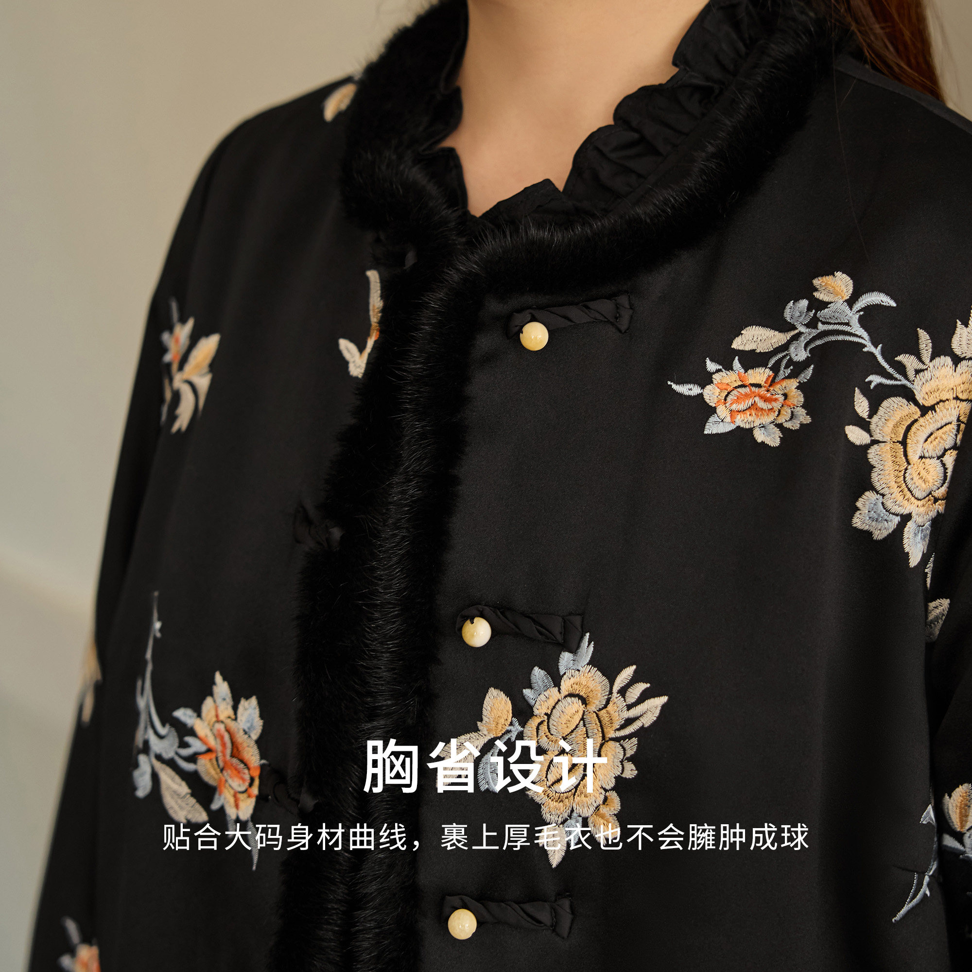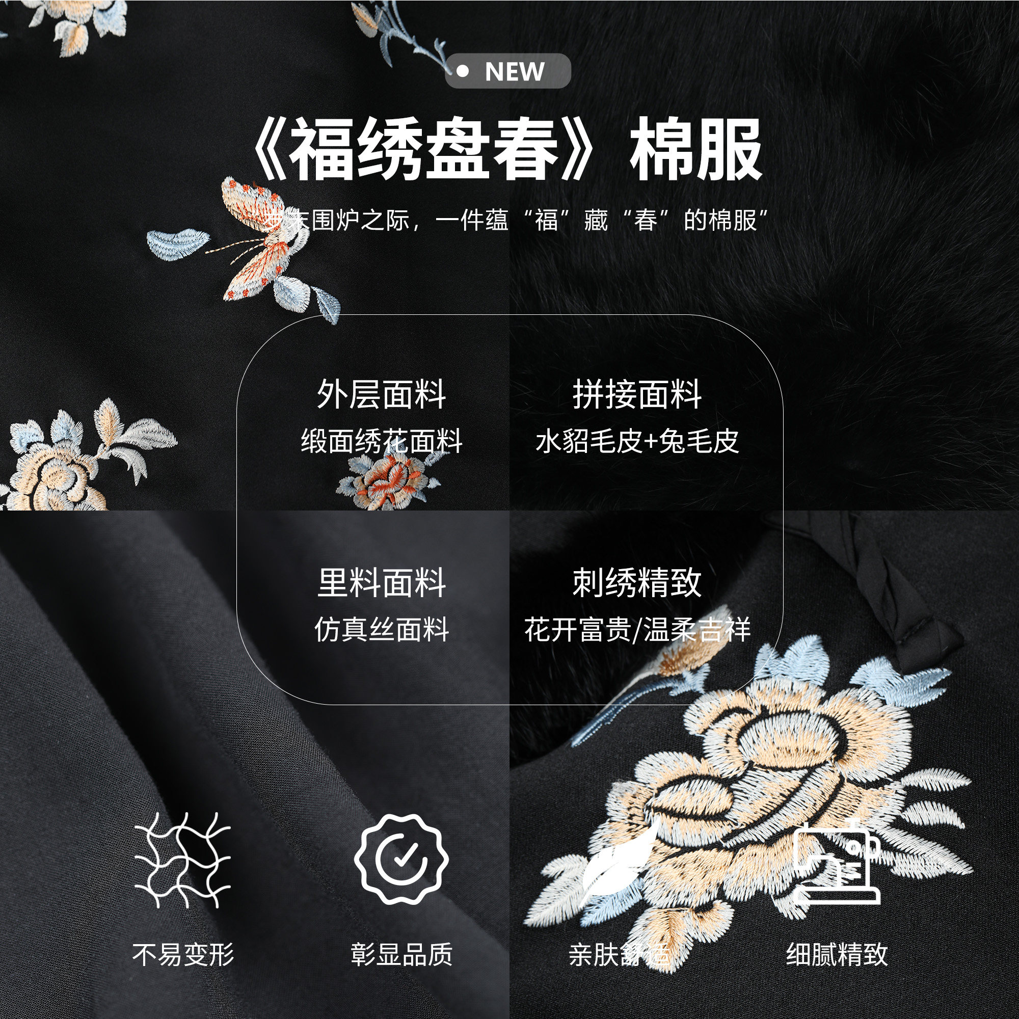 美丽客栈高端大码女装2025冬新款棉服新中式国风水貂毛夹棉外套女