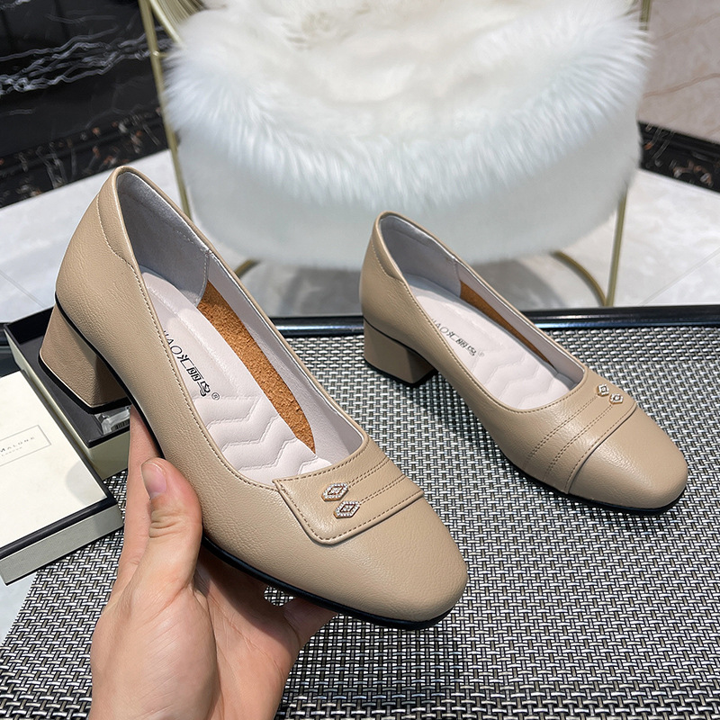 妈妈鞋子单鞋软底女时尚百搭春秋舒适女鞋中年中老年中跟皮鞋