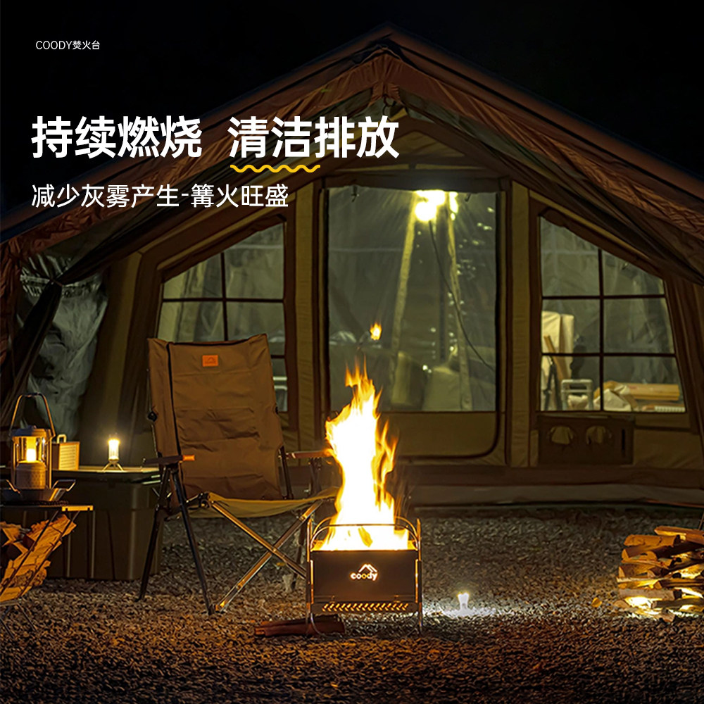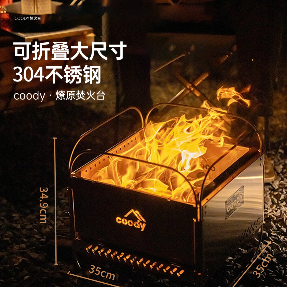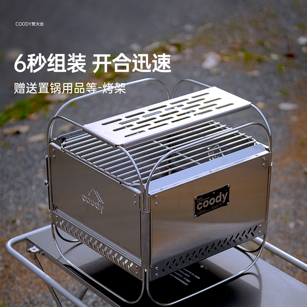 酷迪coody不锈钢焚火台户外野餐取暖分体式折叠炉具便携式烧烤架