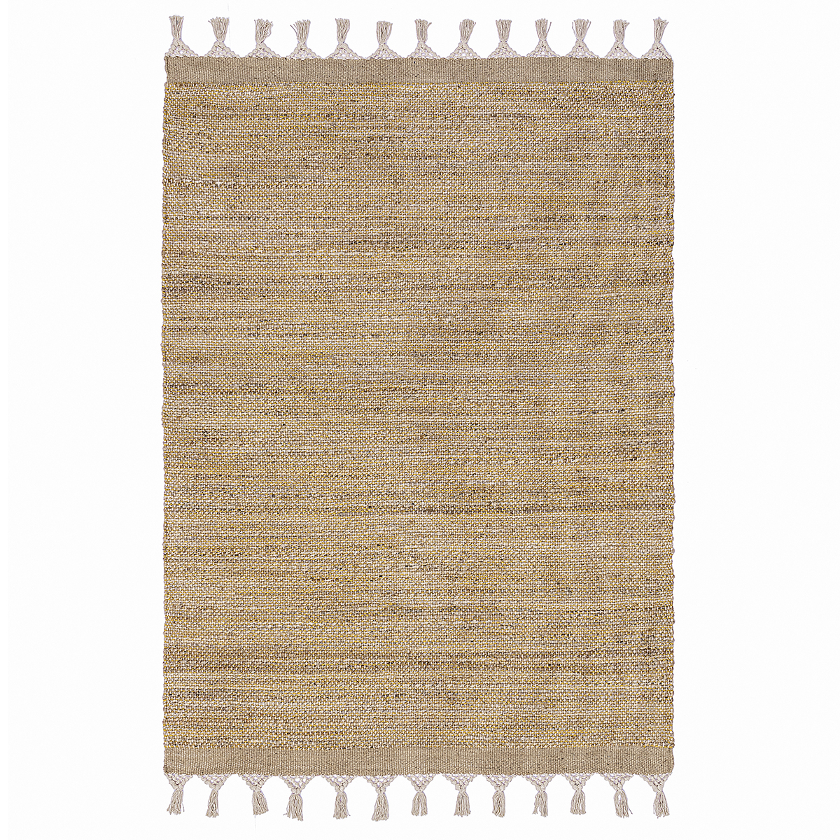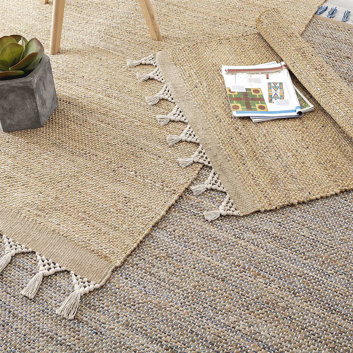 KM地毯 进口手工编织现代简约黄麻流苏工艺家用纯色阳台地毯地垫