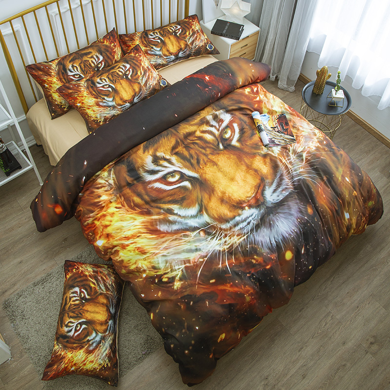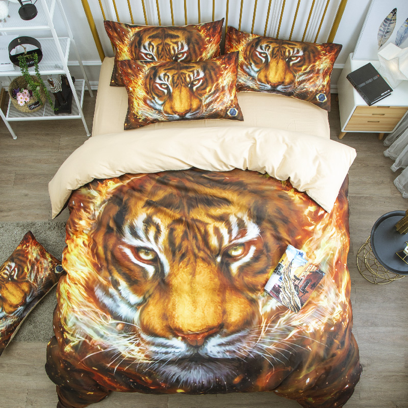 卡通野兽派烈焰虎纯棉枕套霸气男士全棉枕芯罩学生寝室单人枕头皮