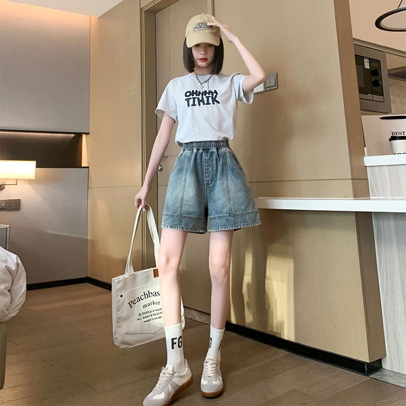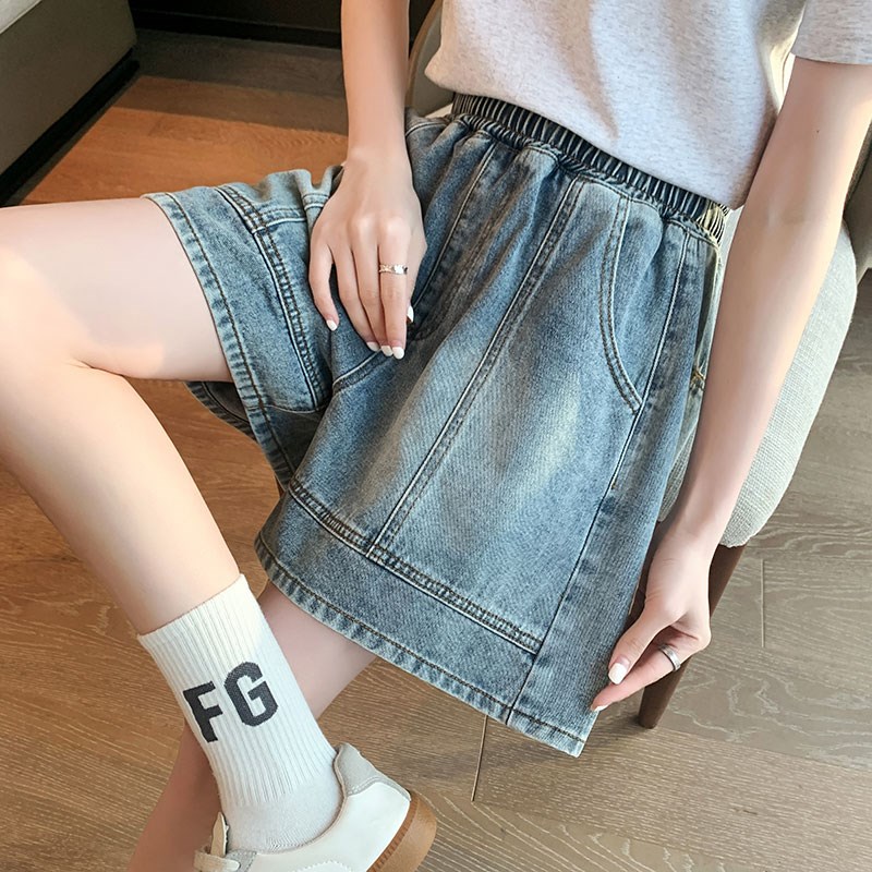 大码女装高腰宽松阔腿牛仔短裤夏季胖MM遮胯显瘦学生百搭A字热裤