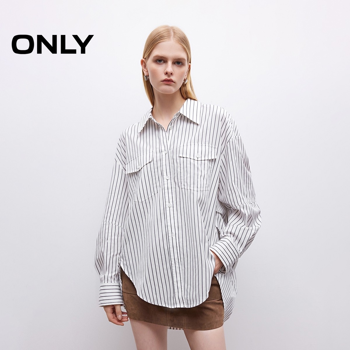 ONLY2025秋季新款立体剪裁松弛oversize挺阔显瘦翻领长袖衬衫女