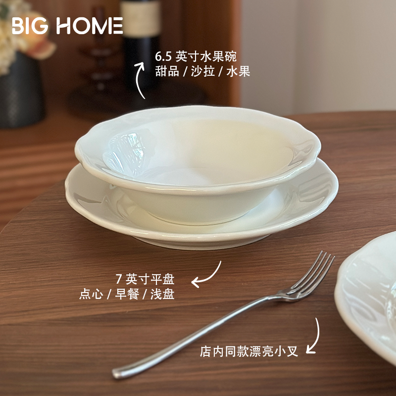 德士敦贝壳系列釉下彩白色沙拉平盘早餐小盘甜品点心盘浅盘圆盘子
