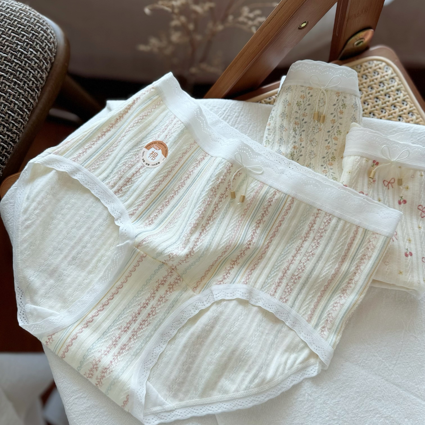 花野来信~10A抑菌纯棉舒适温柔少女内裤女生白色蕾丝边中腰三角裤