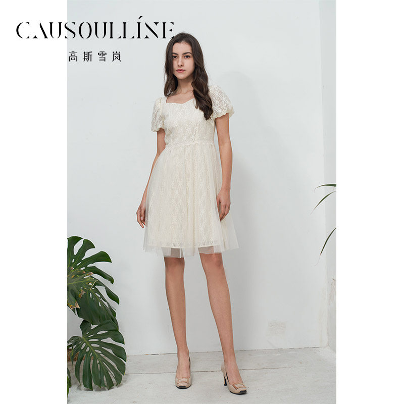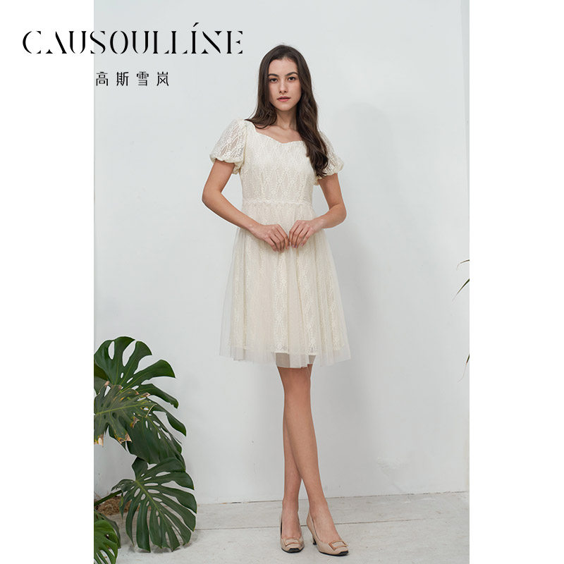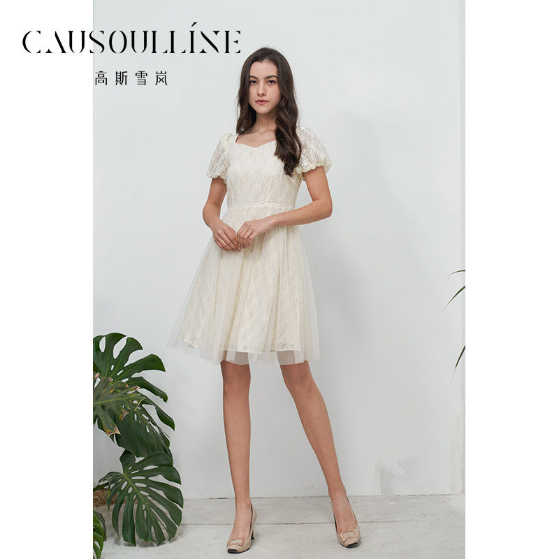 高斯雪岚2024夏季新款蕾丝绣花仙女裙减龄网纱显瘦收腰a字连衣裙