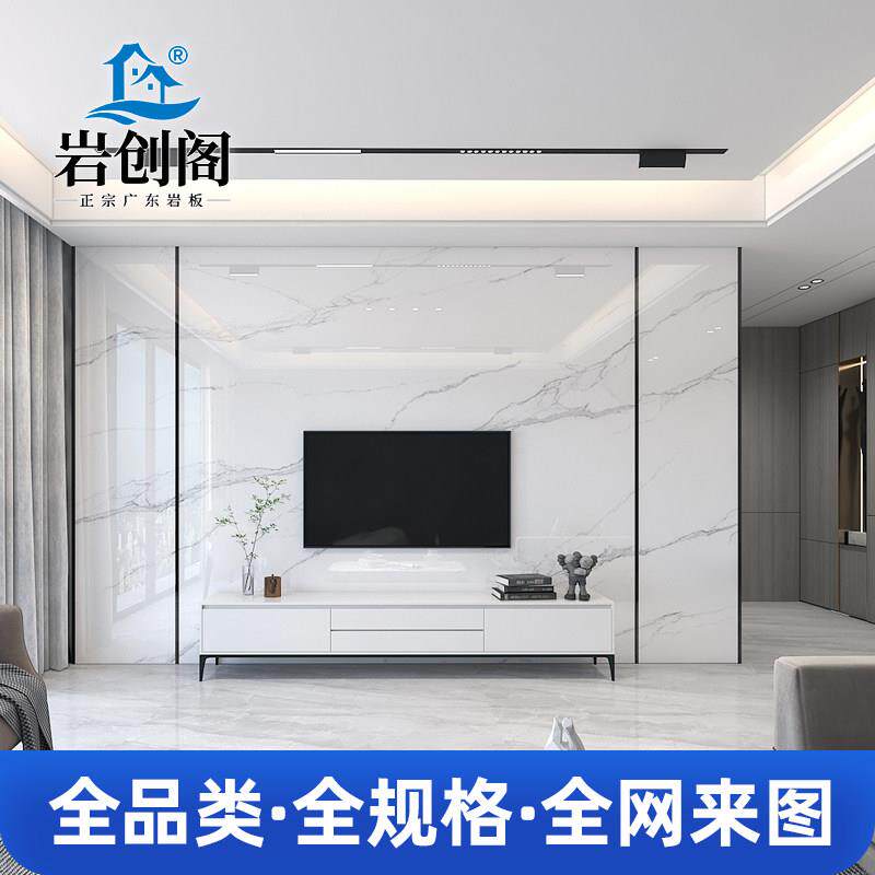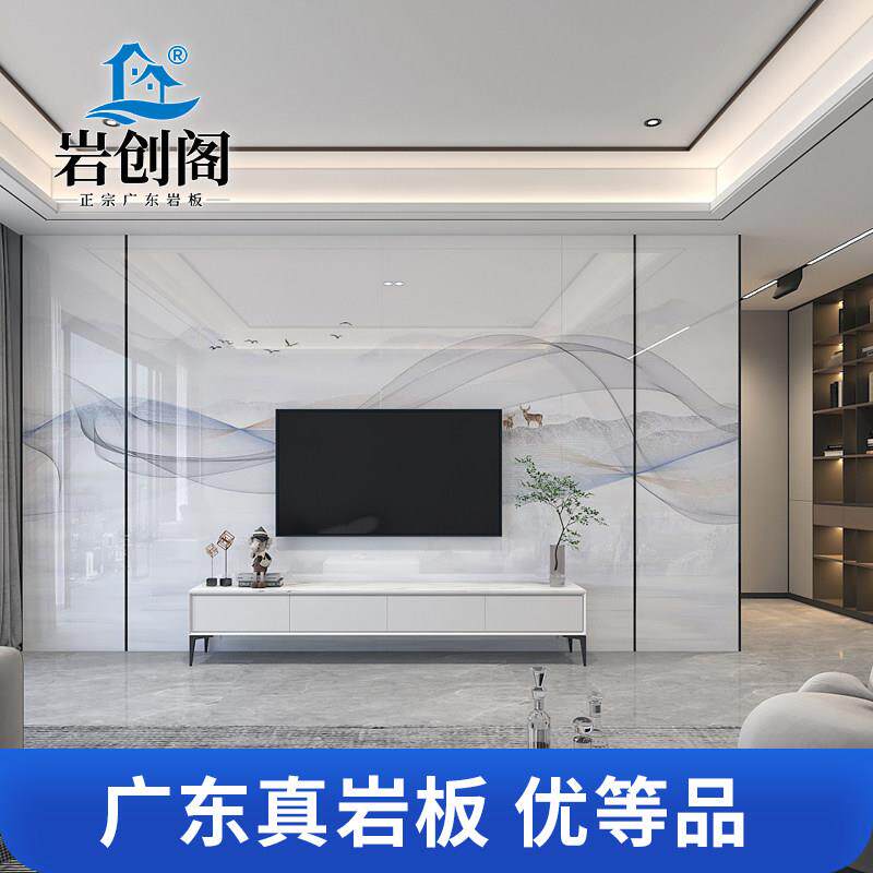 岩板电视背景墙现代简约瓷砖大理石客厅沙发新中式定制木格栅
