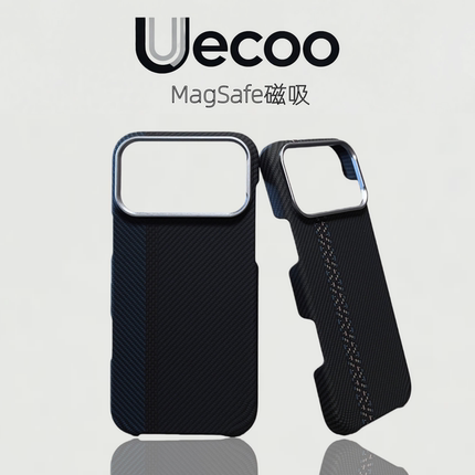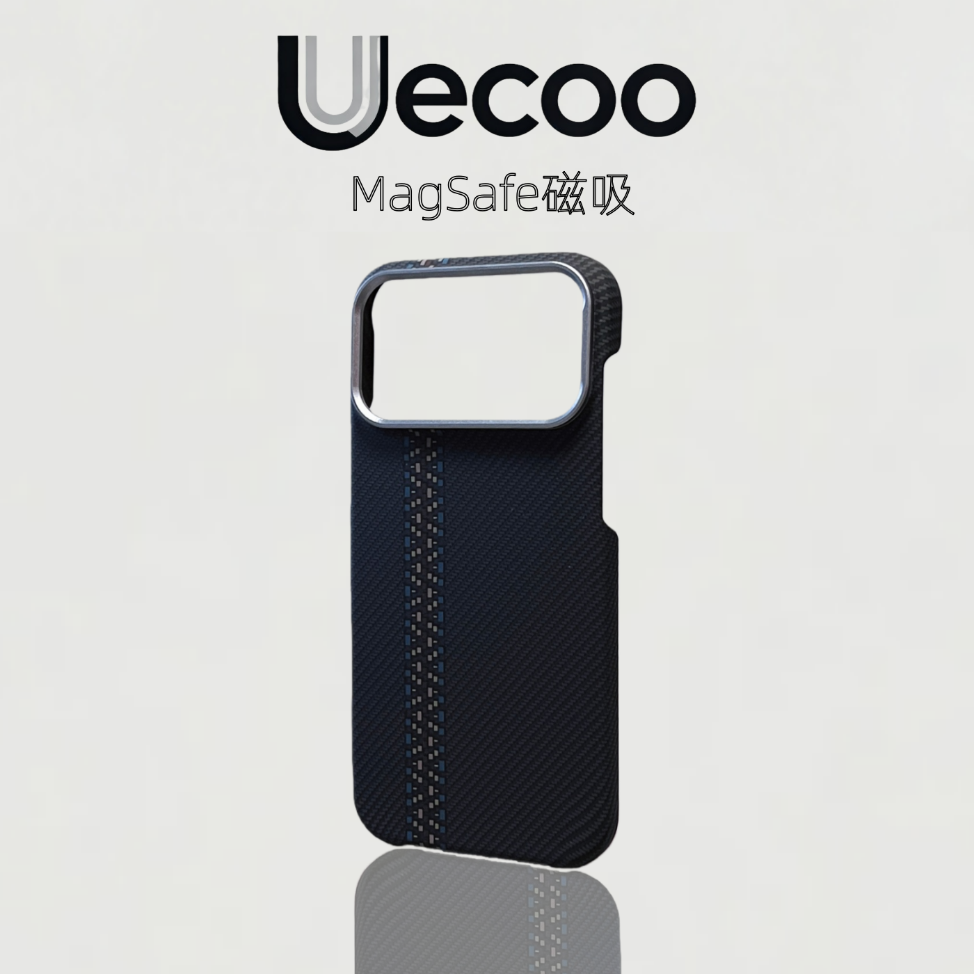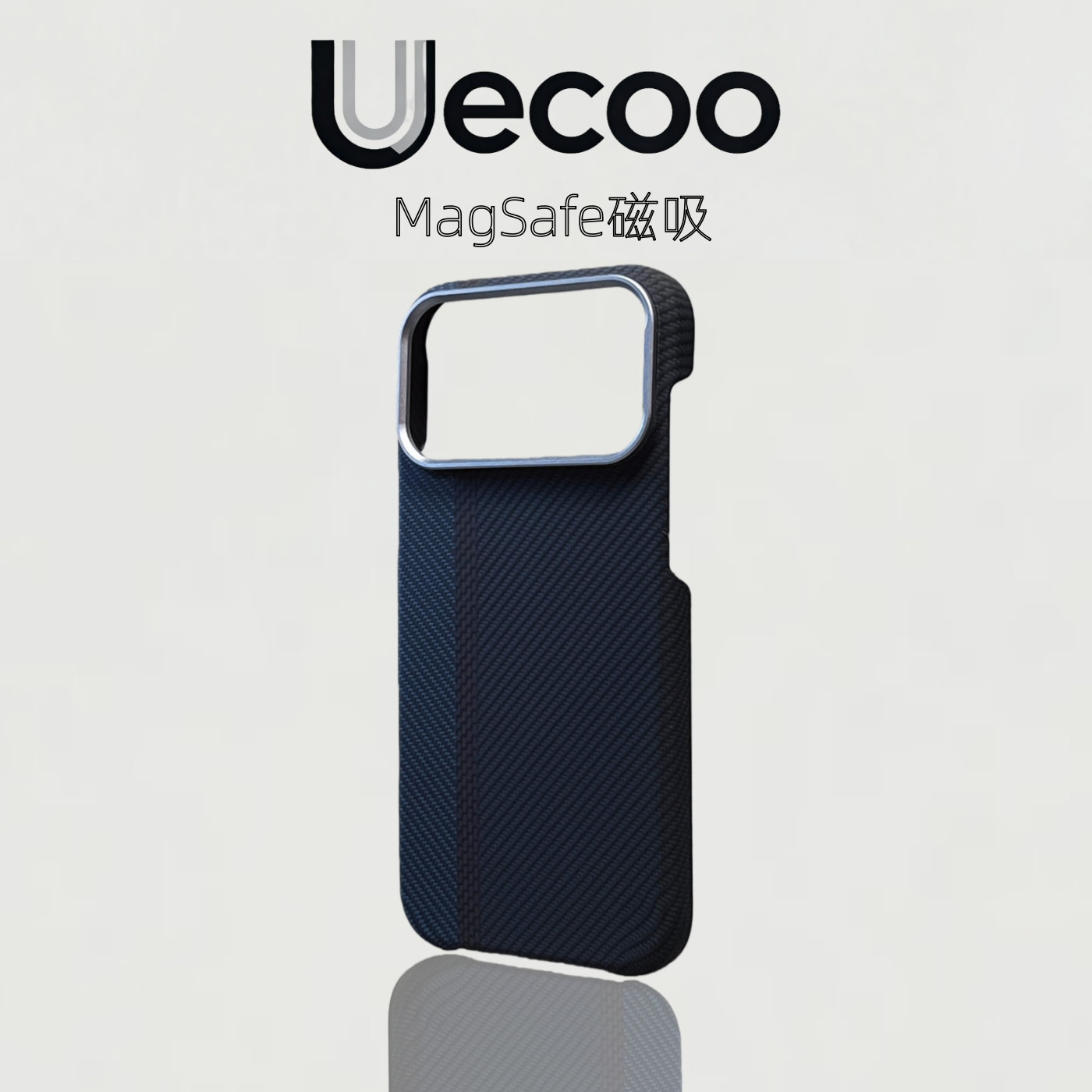 【Uecoo原创家】碳纹凯夫拉纹适用于iPhone17promax手机壳简约16苹果保护套半包超薄磁吸苹果手机壳金属镜框