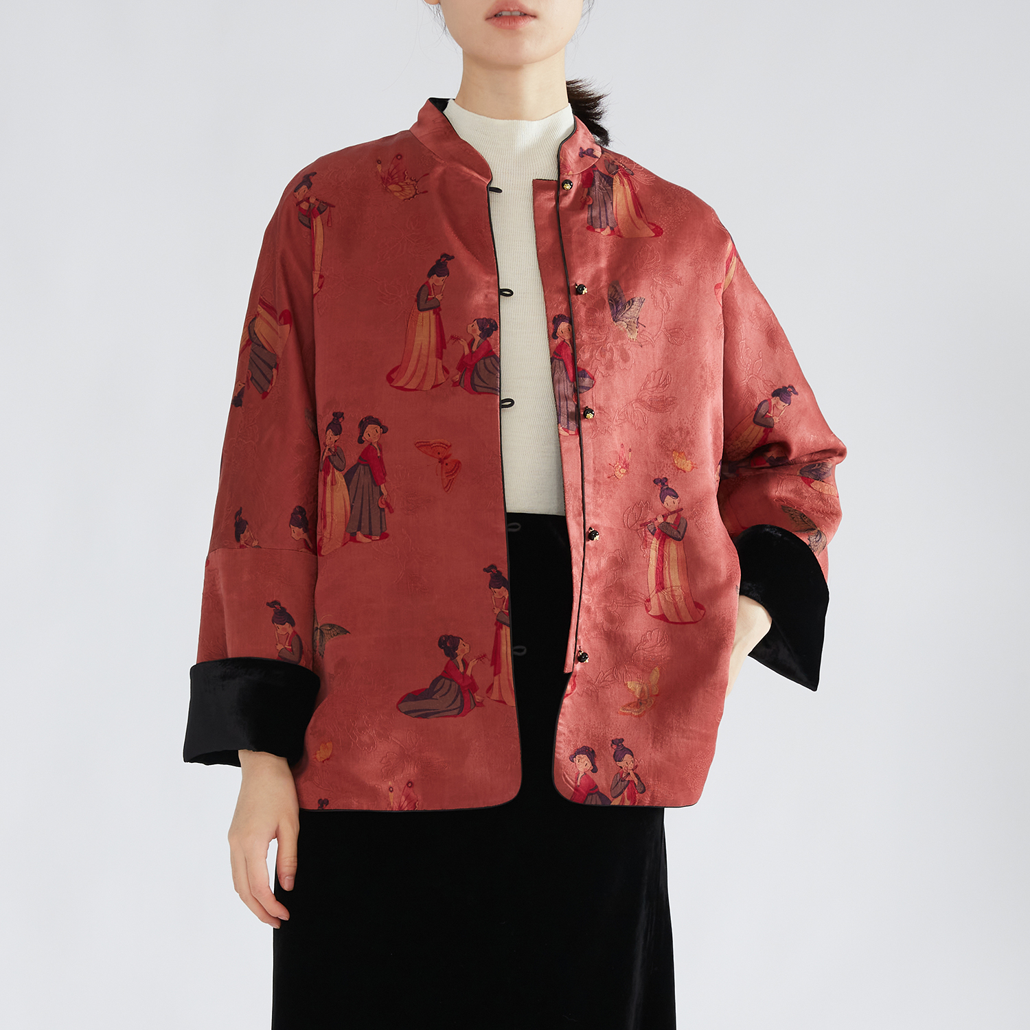 一丝牵双面穿真丝丝绒国风外套香云纱提花花萝桑蚕丝新中式开衫秋