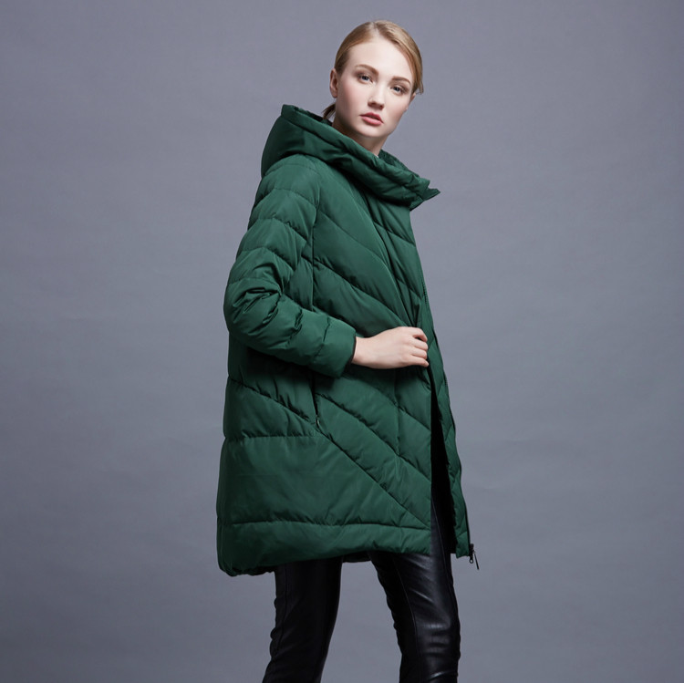 欧货新款大码连帽宽松加厚中年妈妈装羽绒服女中长款冬季外套