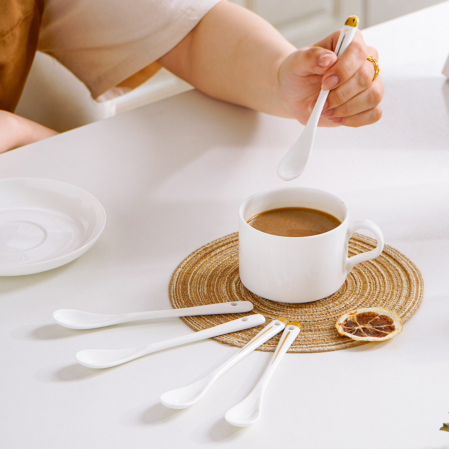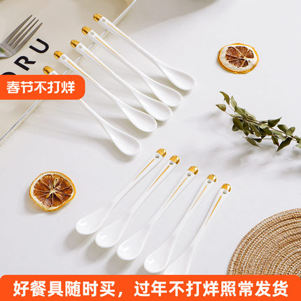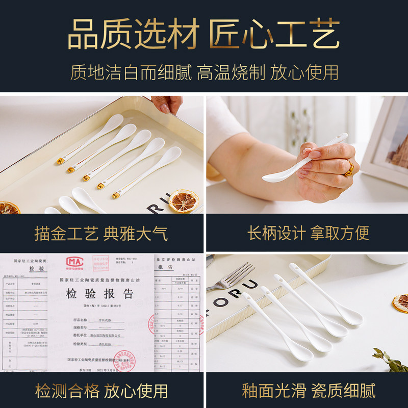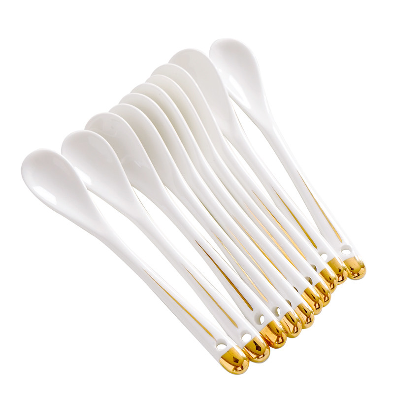 家用描金骨瓷长柄咖啡搅拌勺厨房调料勺陶瓷迷你蜂蜜勺婴儿小勺