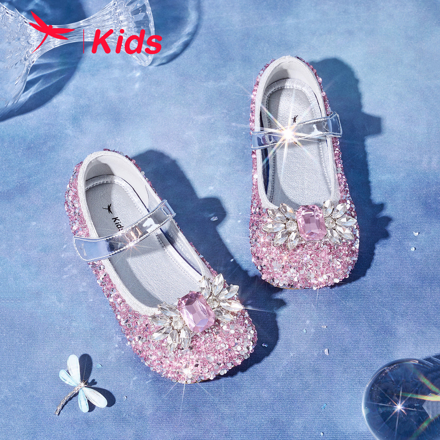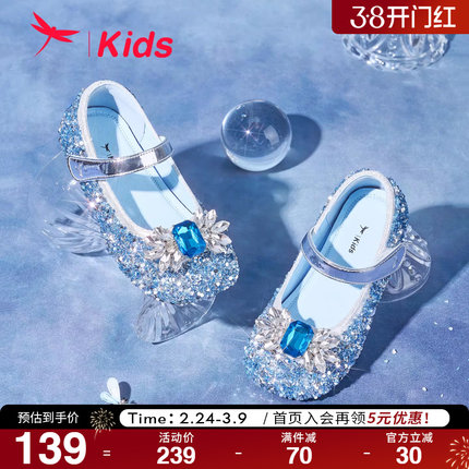 红蜻蜓女童鞋2025秋季新款艾莎公主鞋水钻水晶鞋高跟单鞋儿童皮鞋
