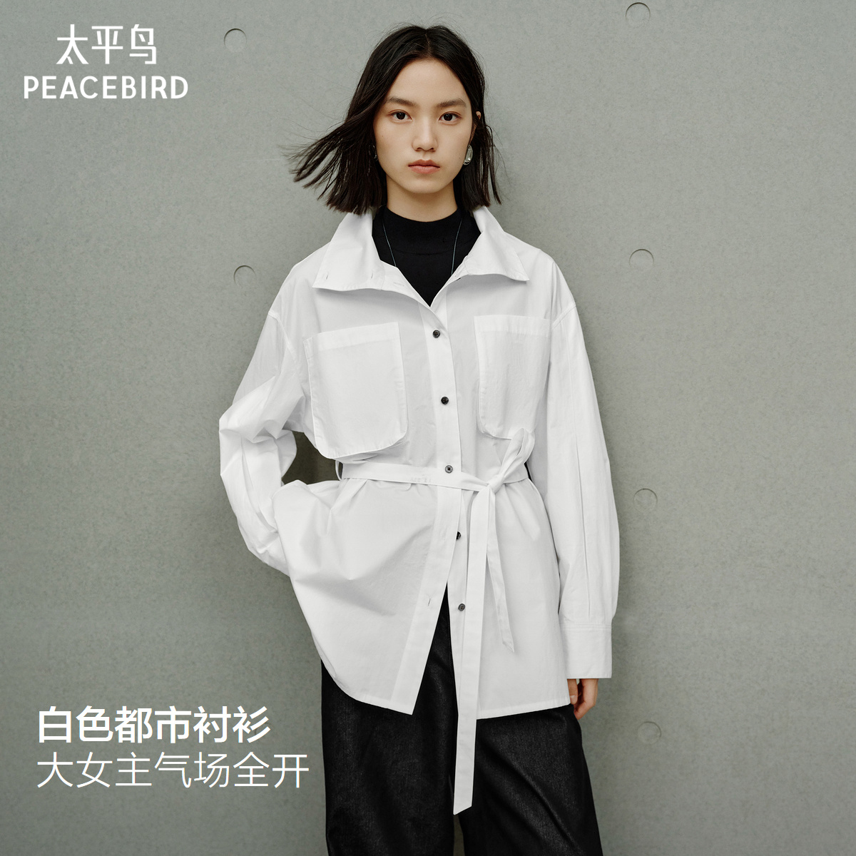 【张婧仪同款】太平鸟立领廓形风衣式长袖衬衫商场新款A1CAF3337