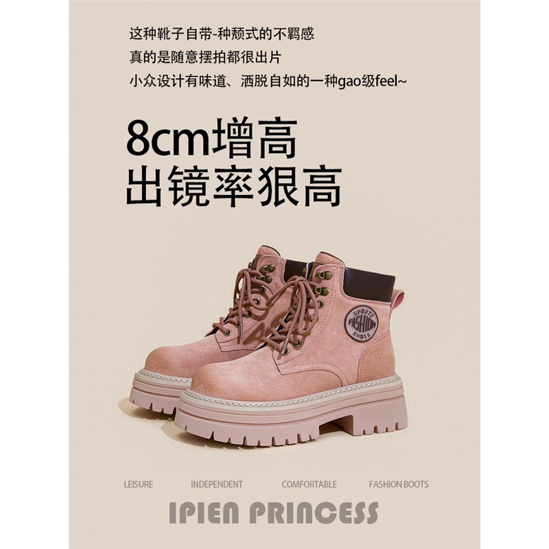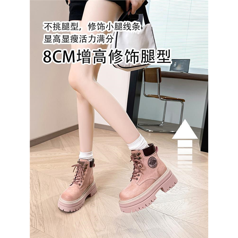 品牌特价真皮厚底短靴女大黄靴2025秋冬新款炸街机车靴系带马丁靴
