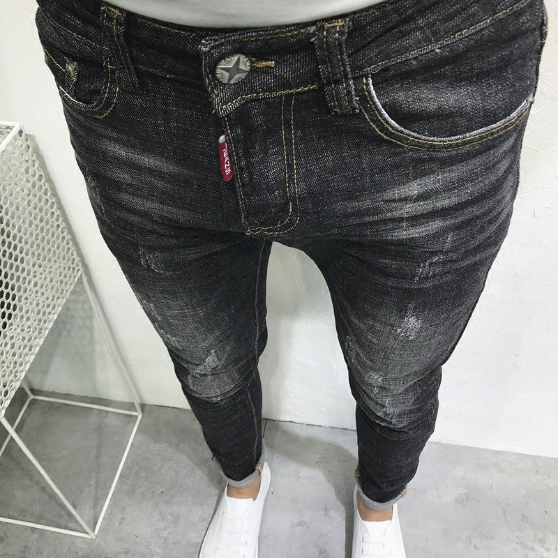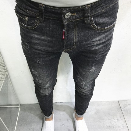 网红韩版修身贴标社会小伙牛仔裤