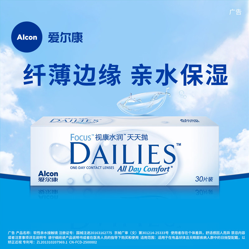 爱尔康视康隐形近视眼镜日抛水润天天抛30片盒透明旗舰官网正品