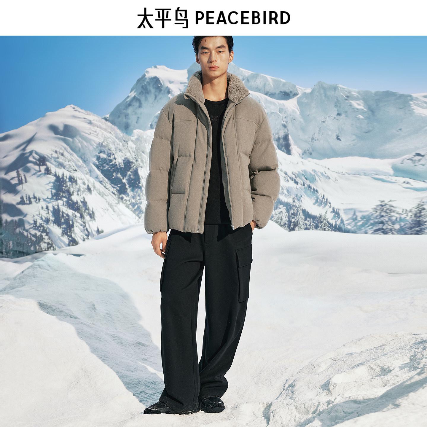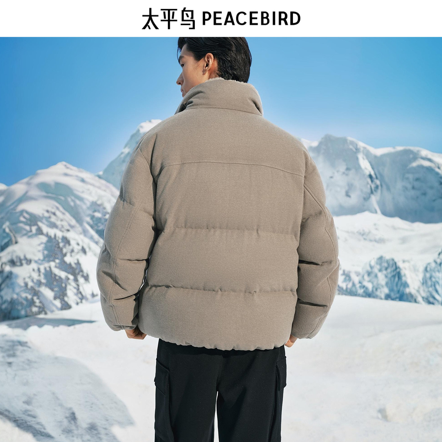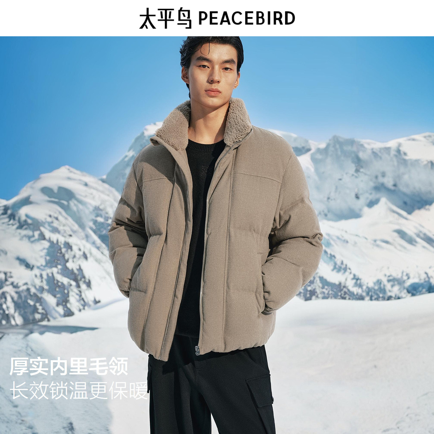太平鸟男装 毛领羽绒服男2025年冬季新款保暖短款立领面包防寒服~